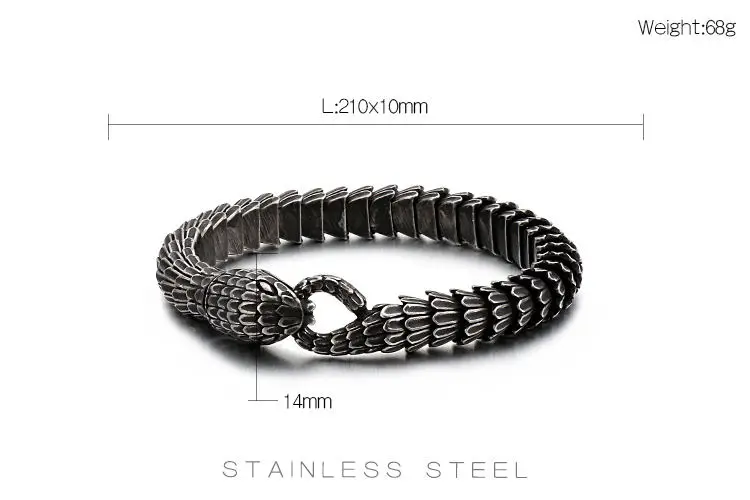 • 19/21/23cm 2023 New Design Customized Stainless Steel Punk Vintage Snake Bracelet & Bangle for Unisex