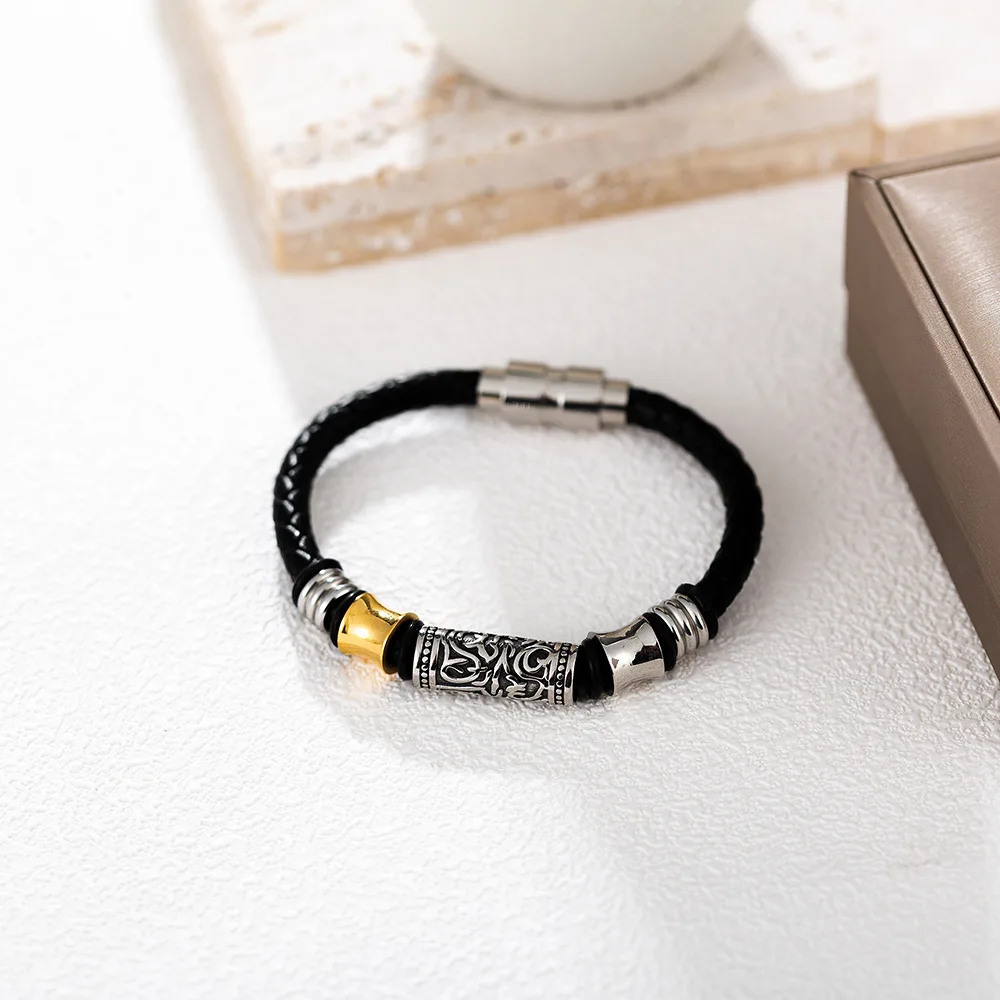 • 2023 New Punk Black Brown Braid Leather Bracelets Men Cool Stainless Steel Bracelets