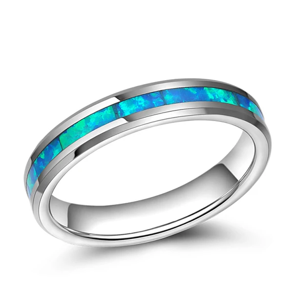 • 2025 Guangzhou Jewelry 4mm Blue Genuine Opal Inlay  Tungsten Ring for Women Men Engagement Wedding Band