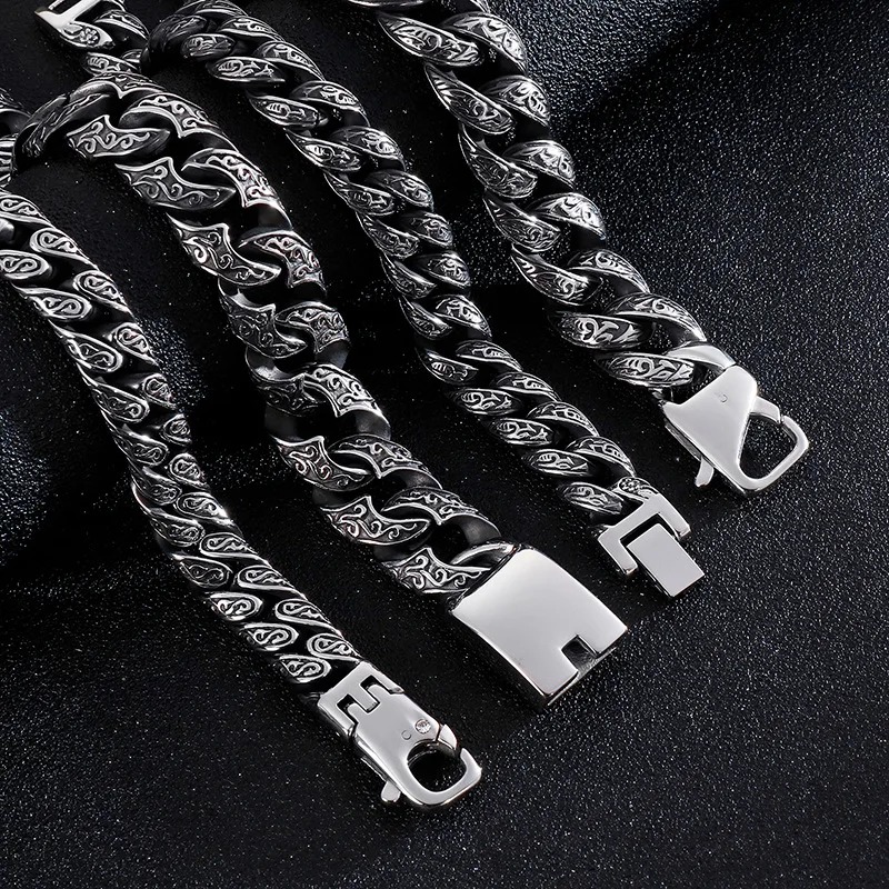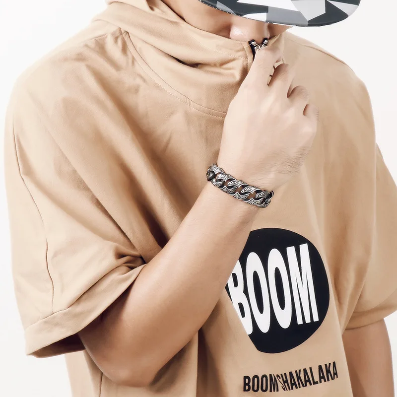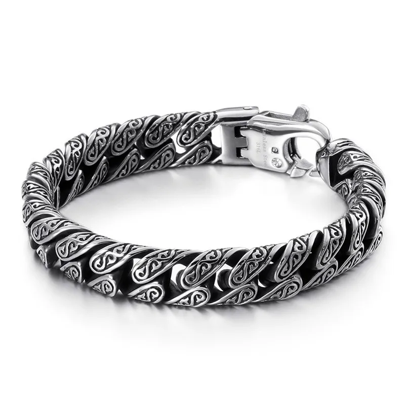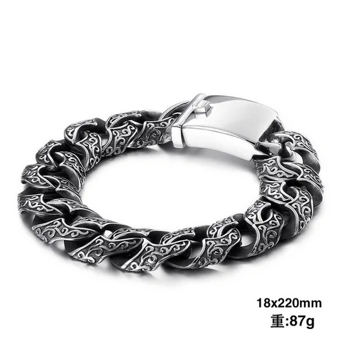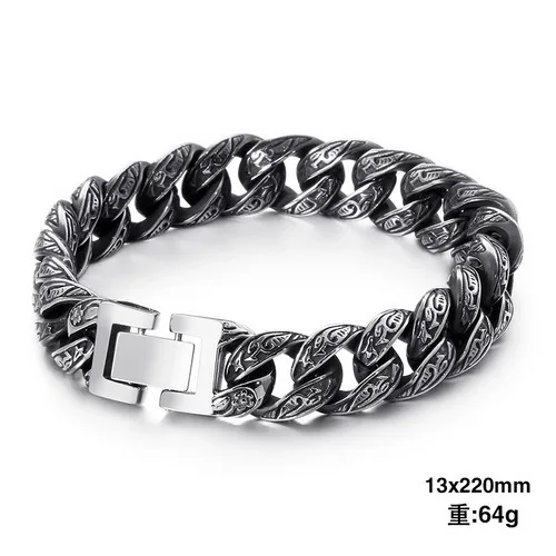 220mm Vintage Stainless Steel Zircons Cuban Link Bracelets