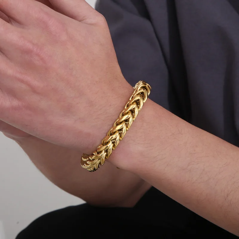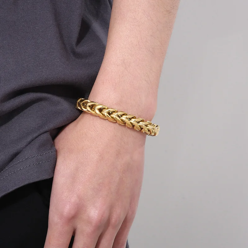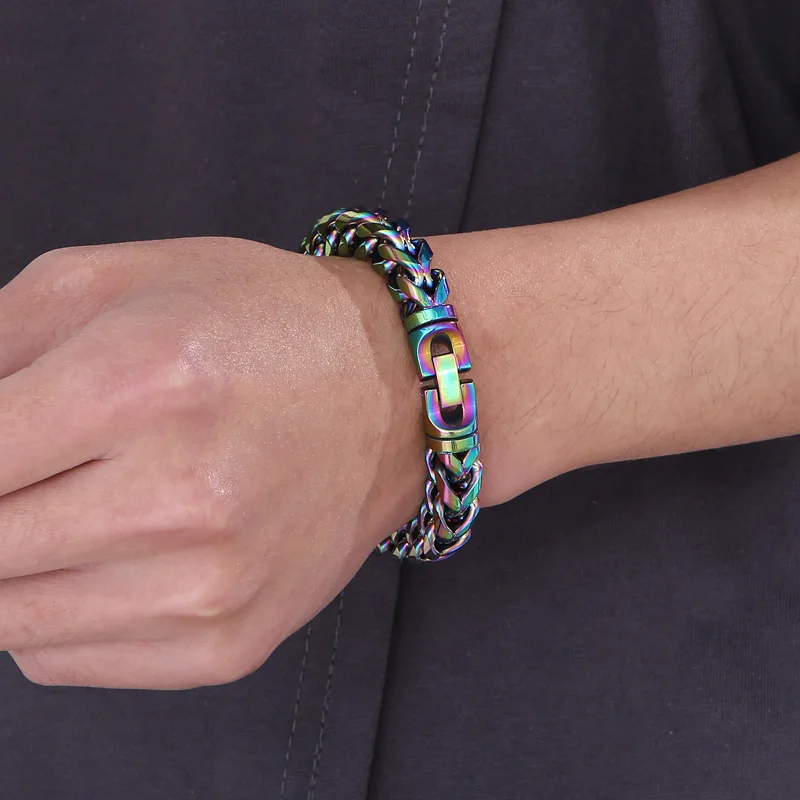 • 230mm Unisex Casual Silver/gold/black/blue/rainbow Stainless Steel Herringbone Bracelets
