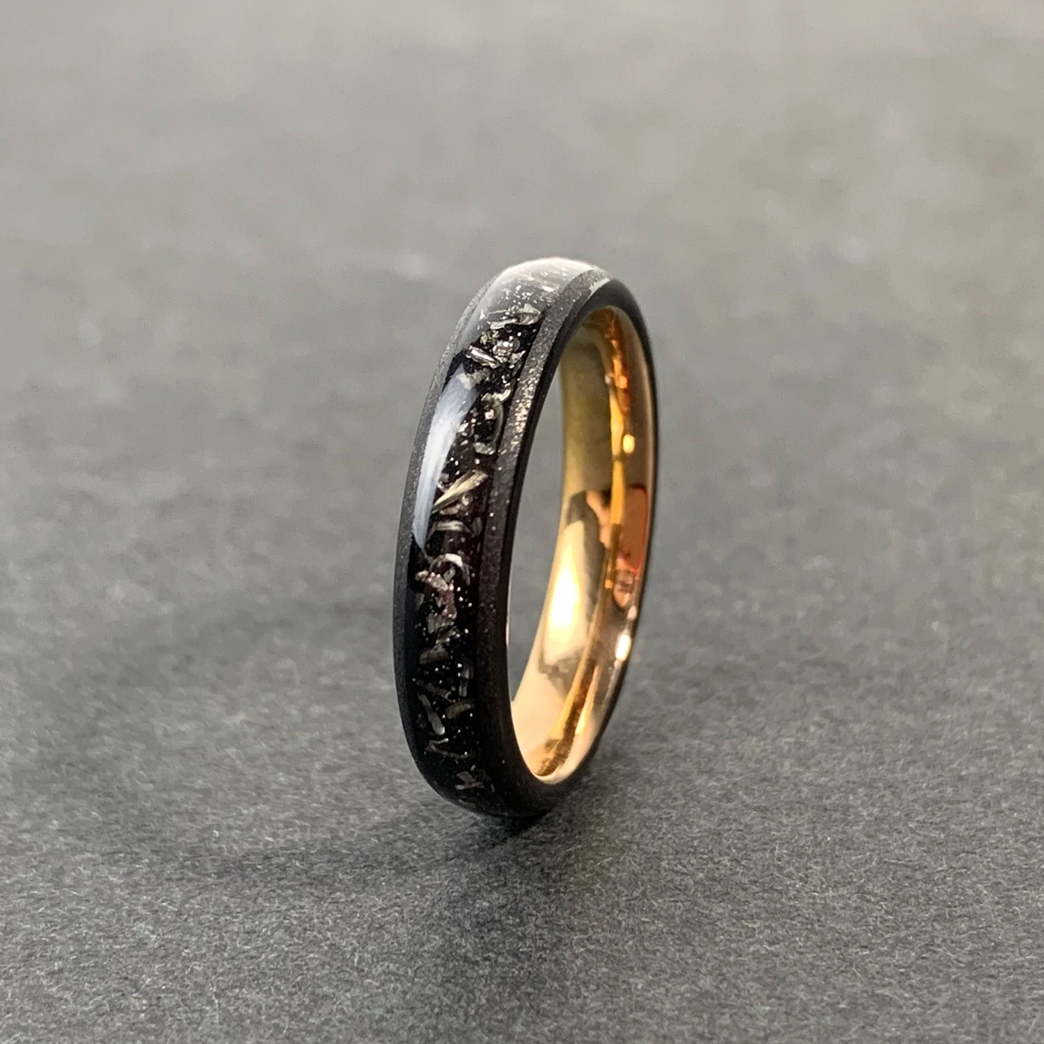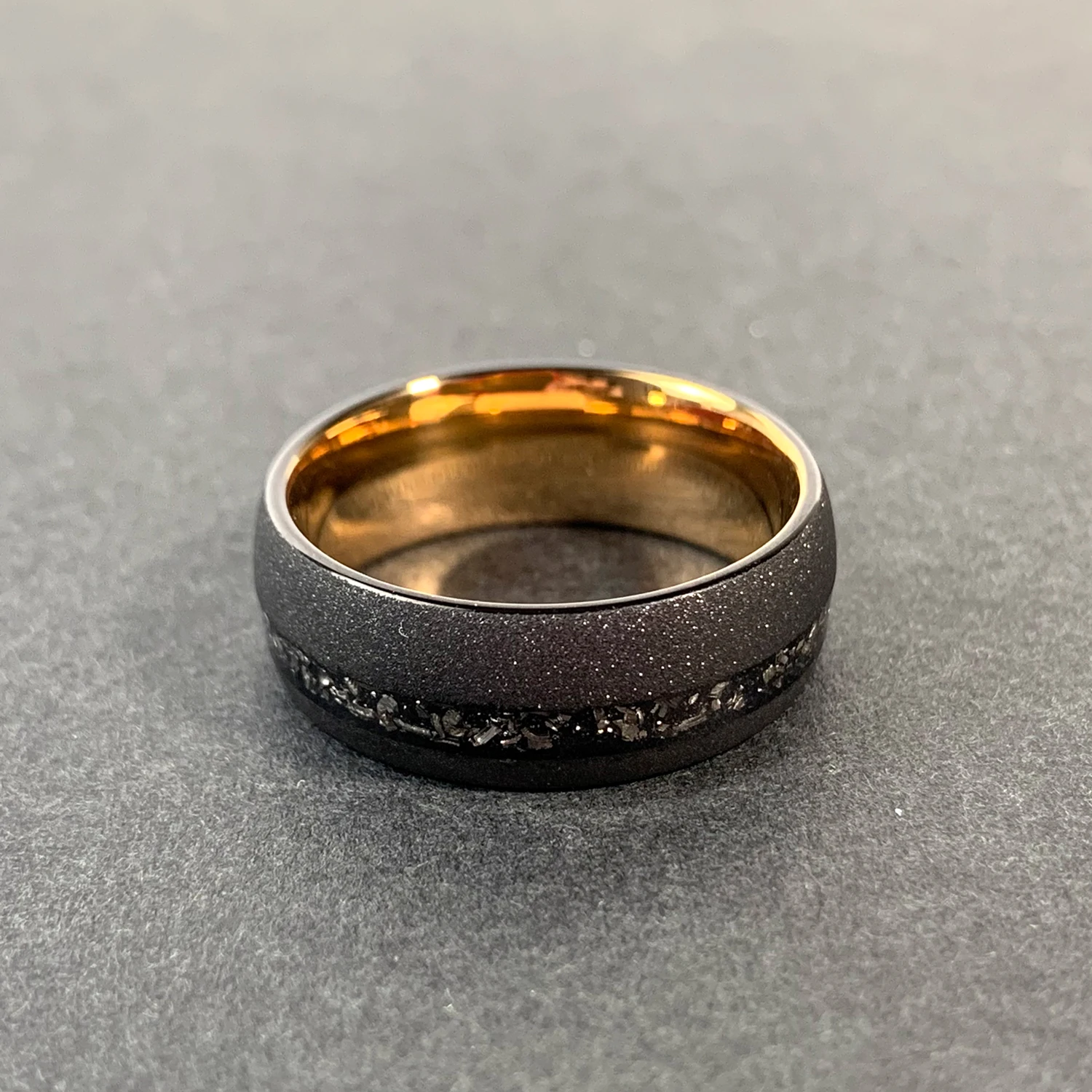 Item Model | 4MM And 8MM Authentic Tungsten Carbide Crushed Inlay Black Meteorite Tungsten Ring Gold Sandblasted Tungsten Rings |
