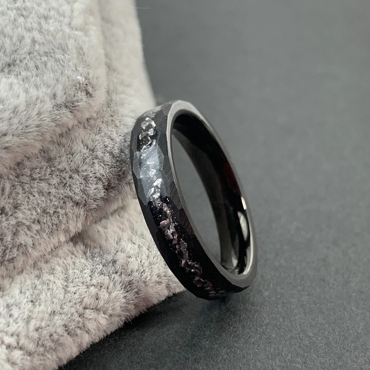• 4mm Black Hammered or Matte Finish Crushed Meteorite Tungsten Ring for Men