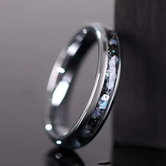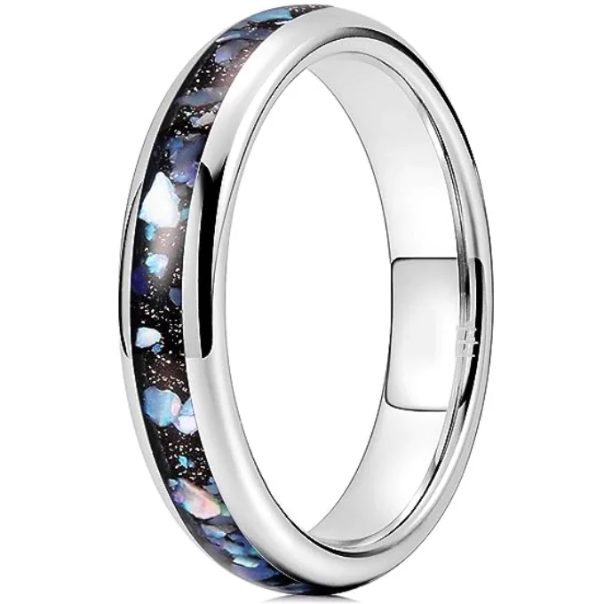 • 4mm Wholesale Tungsten Rings Fashionable Engagement Wedding Band with Genuine Blue Opal Inlay for Men and Women