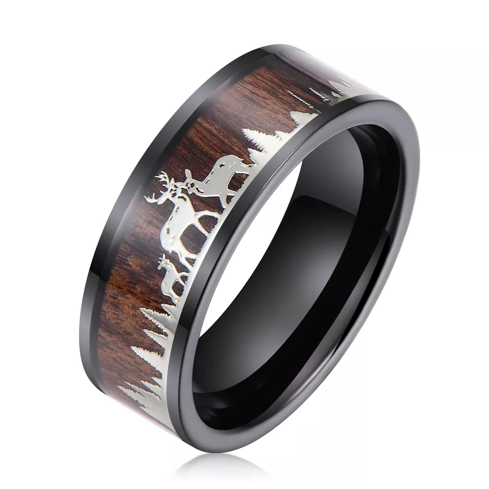 • 8mm Antlers Tungsten Carbide Rings Vintage Men Rings Wood Inlay Galaxy Rings