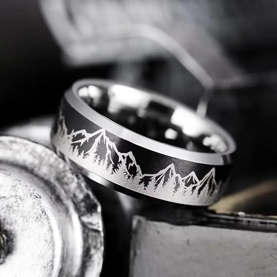 Item Model | 8mm black plated men laser tungsten ring with laser pattern comfort it ring |