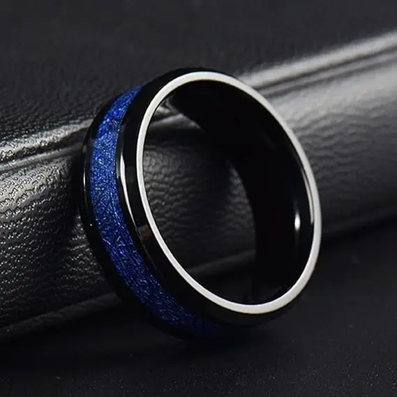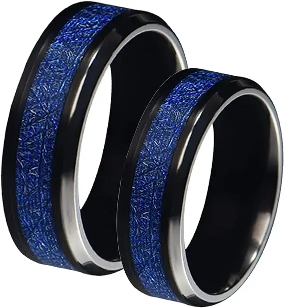 Item Model | 8mm Black Plated Tungsten Ring inlay blue carbon fiber for men and women comfort it ring couple wedding band |