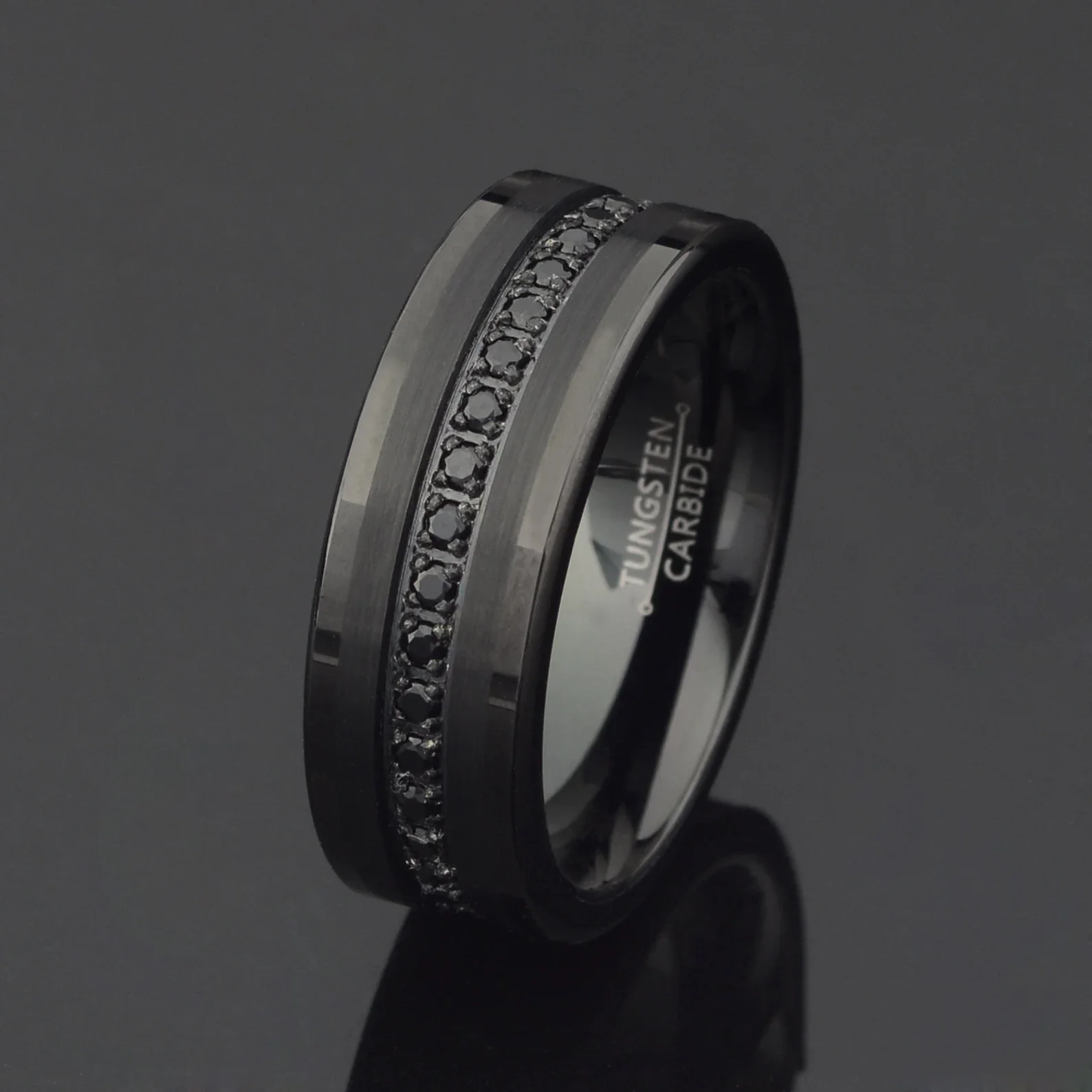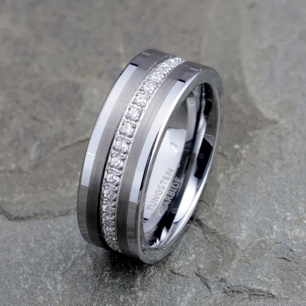 • 8mm Black Tungsten Ring for Men Women Engagement Promise Wedding Diamonds Band Princess Cz Stone Inlay Comfort Fit