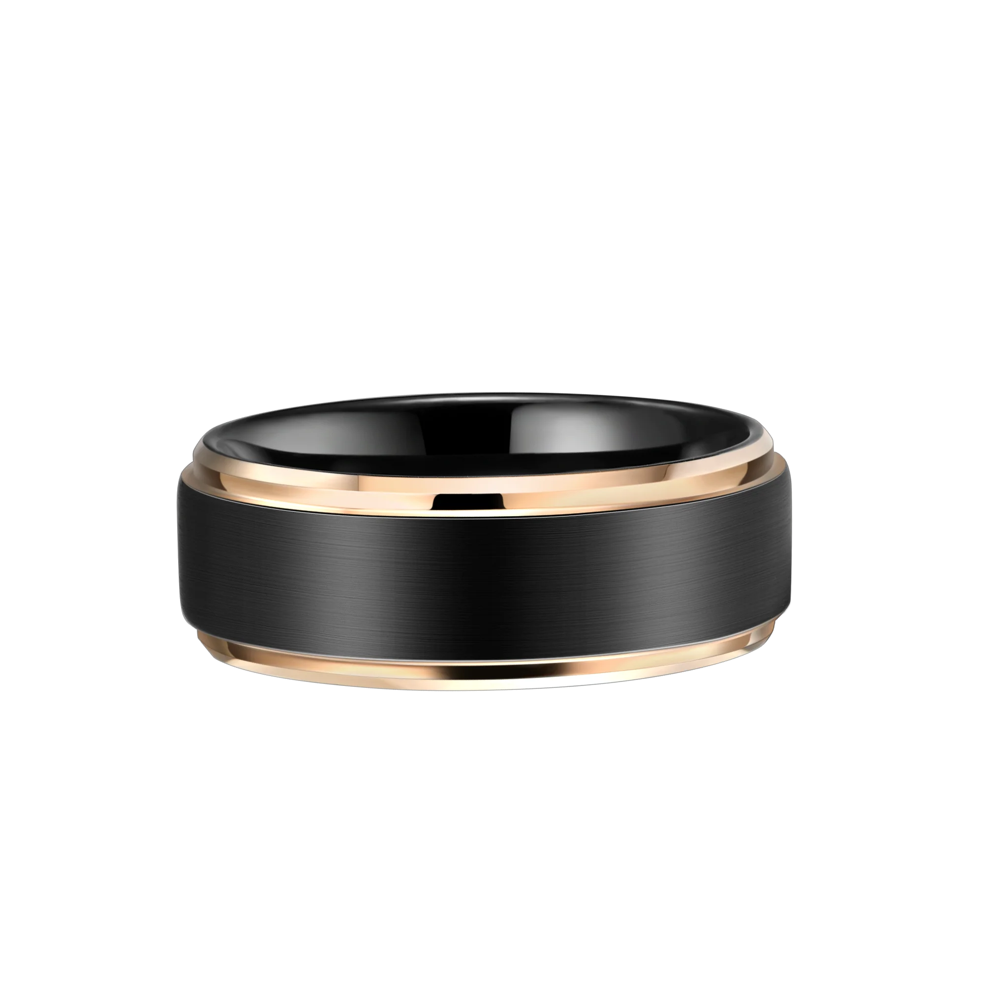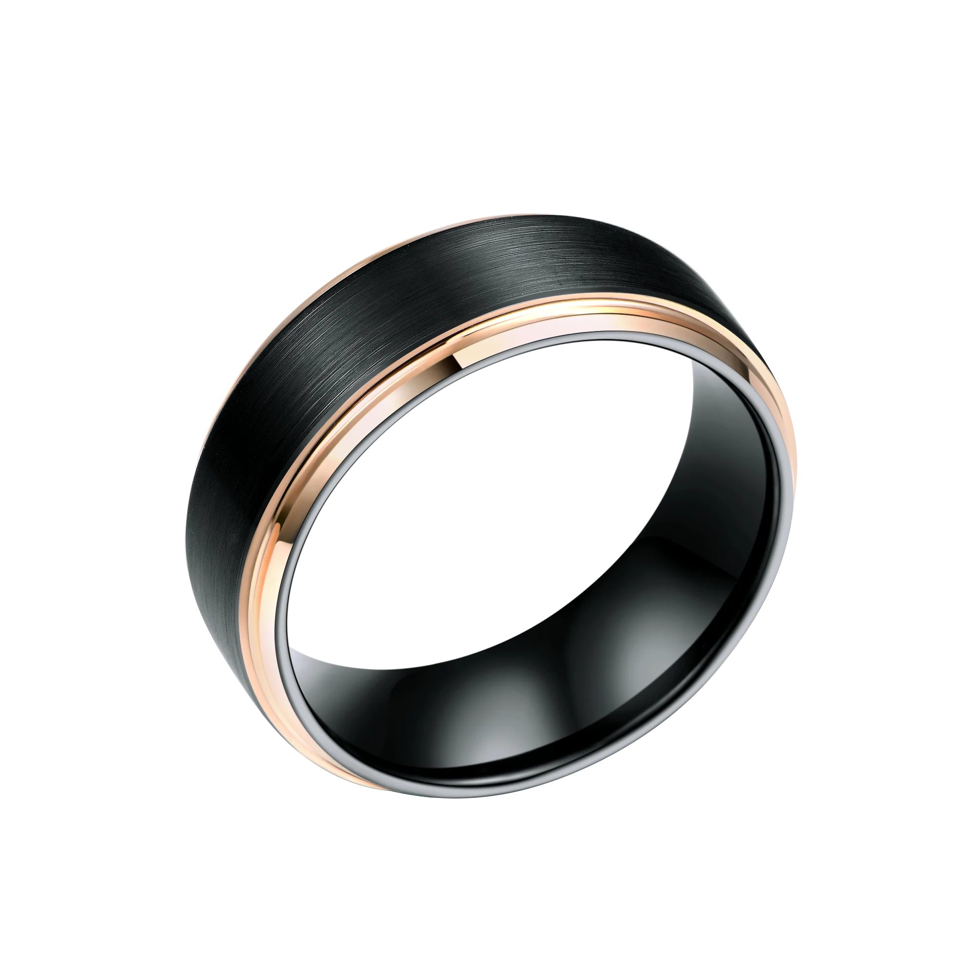 Item Model | 8mm Center brushed IP black plated tungsten ring with stepped edges tungsten rings men and women |