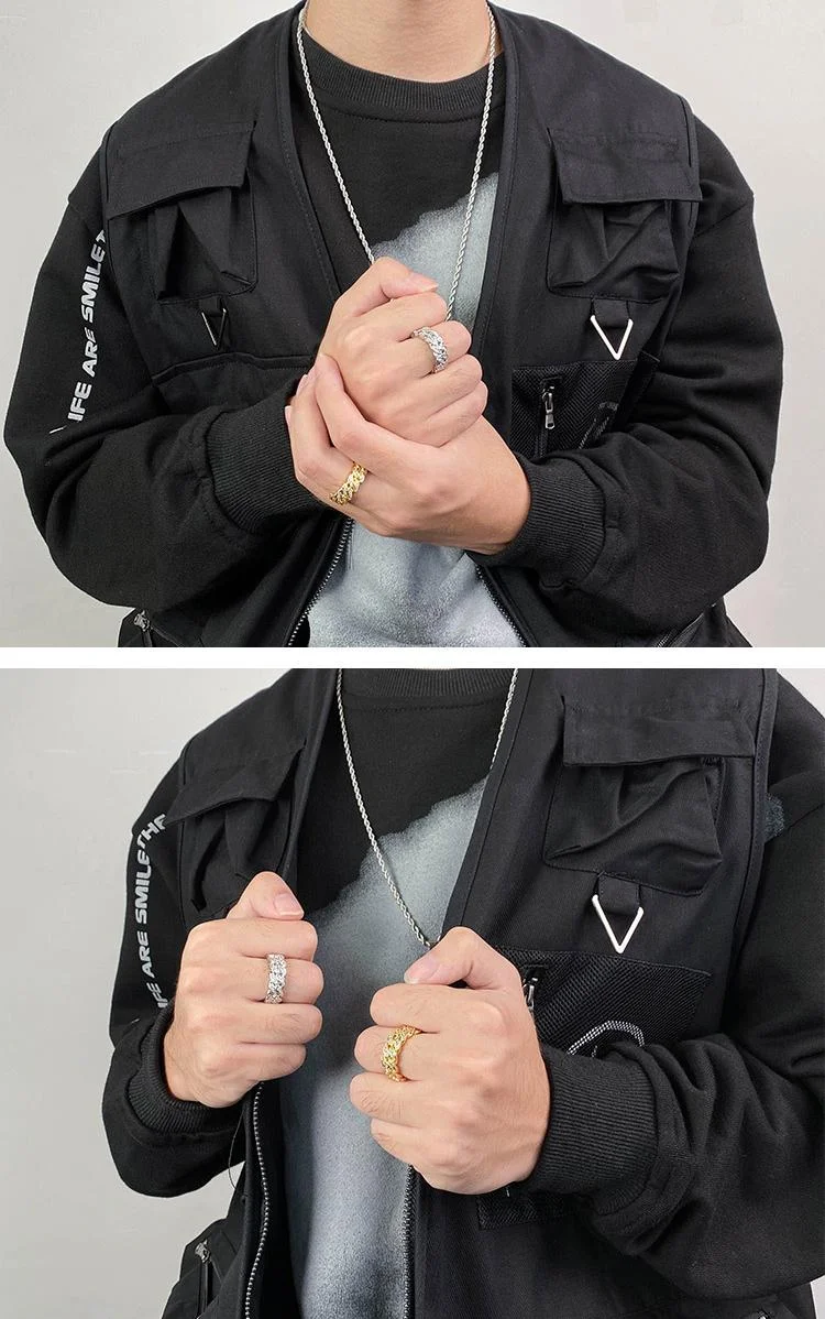 8mm European and American Hip Hop Cuban Chain Ring Gold Engagement Rings Zircon Wedding Ring Set