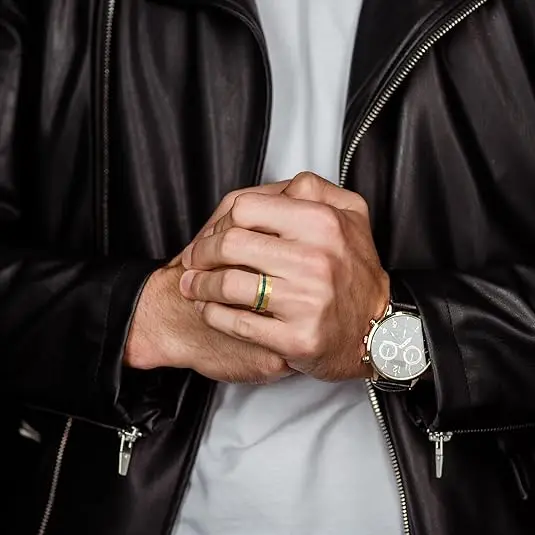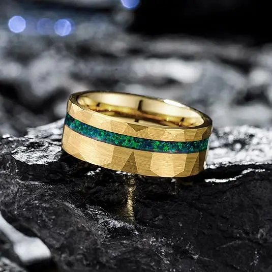 • 8mm Opal Inlay Hammered 18K Gold Tungsten Ring for Men Women Fashion Wedding Band Promise Rings Comfort Fit