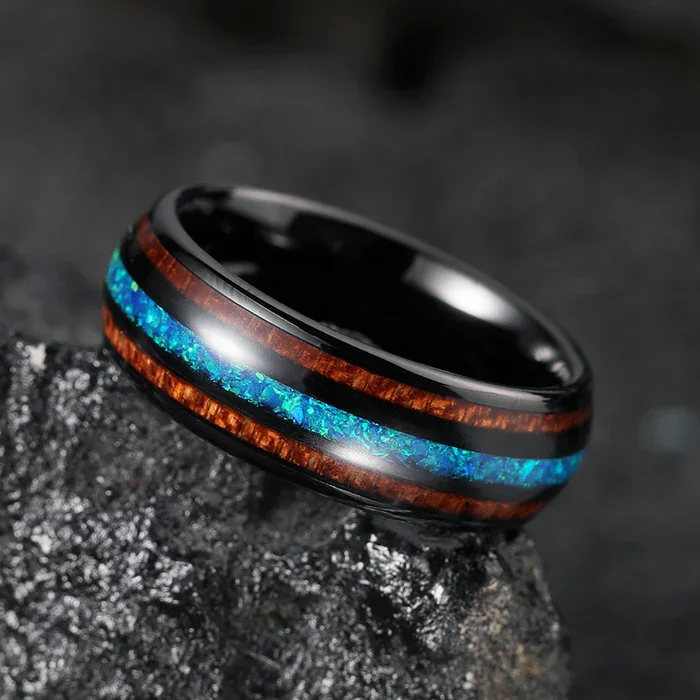 Item Model | 8mm Tungsten Crushed Blue Opal Wedding Band Fashion Jewelry Rings for Women Mens Wedding Band Koa Opal Tungsten Ring Jewelry Men |