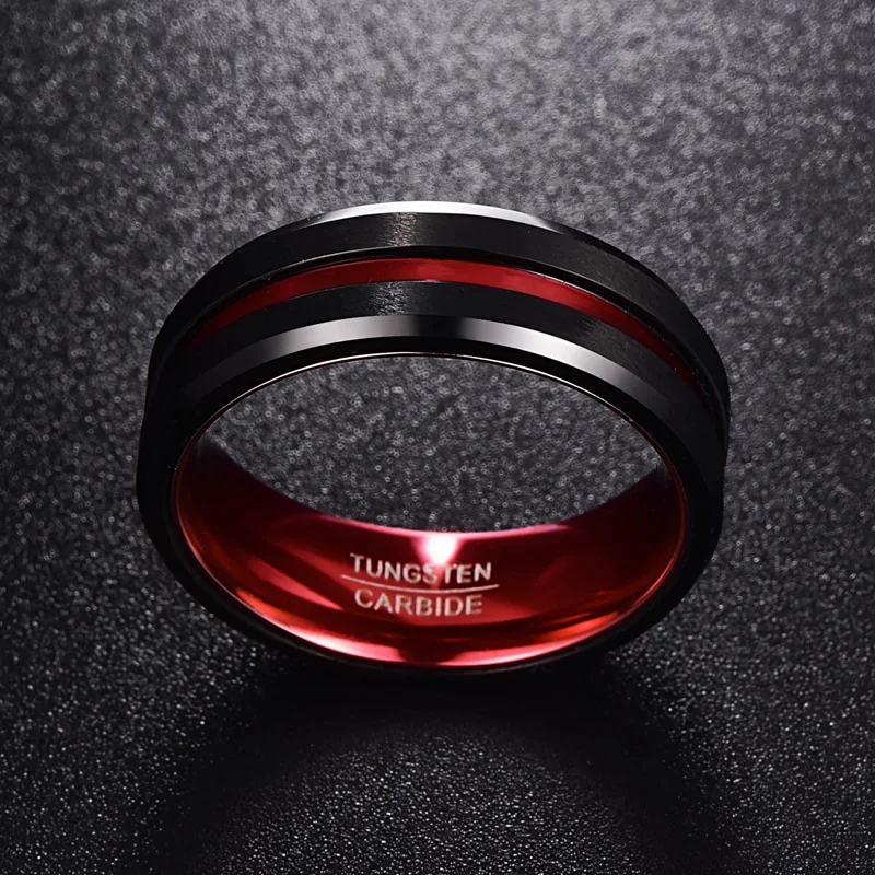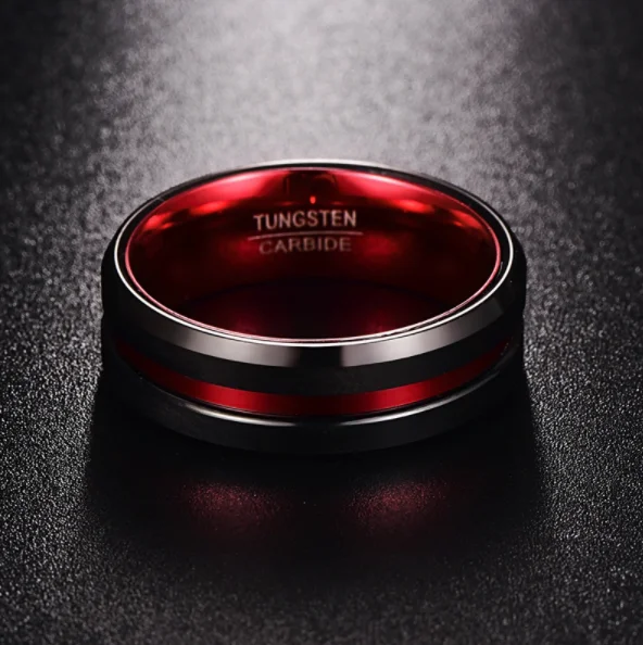 Within the corporate gifting sector, this tungsten carbide ring functions as a durable and visually impactful item suitable for company events, team recognitions, or client rewards. Its scratch-resistant black finish with a red accent aligns with branding and style standards expected from men jewelry rings suppliers aiming to provide products that reflect professionalism and durability. The ring integrates seamlessly into corporate procurement workflows through customizable OEM options that allow for logo engraving or branding modifications, facilitating fast turnaround for wholesale tungsten rings projects. This adaptability makes it an effective solution for businesses looking to enhance client and employee engagement programs with robust, fashion-forward accessories.