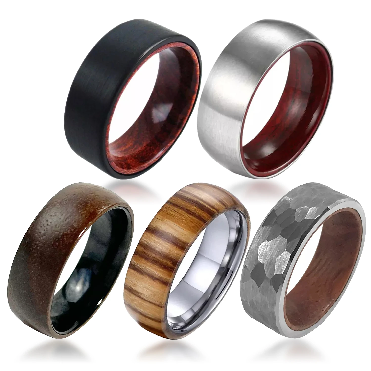 New design wood stripe sticker set ring with tungsten ring prices