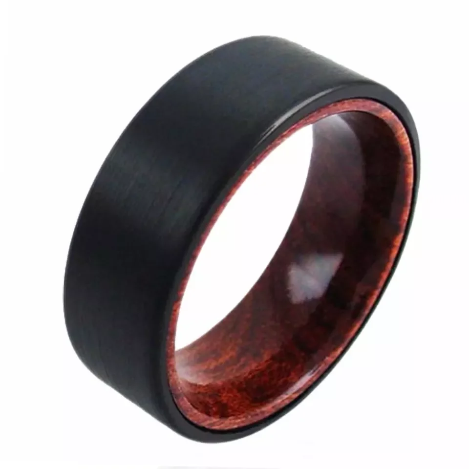 • Best Price Fashionable Tungsten Steel Ring 8mm High Quality Brushed Center Inlaid Whiskey Barrel Wood Beveled Edges Number Shape