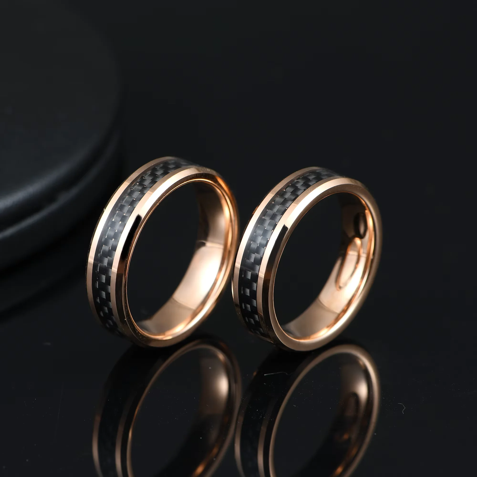 • Black Fiber Patch Chunky Tungsten Carbide Ring Jewelry Tungsten Gold Plated Blue Carbon Fiber Rings for Men