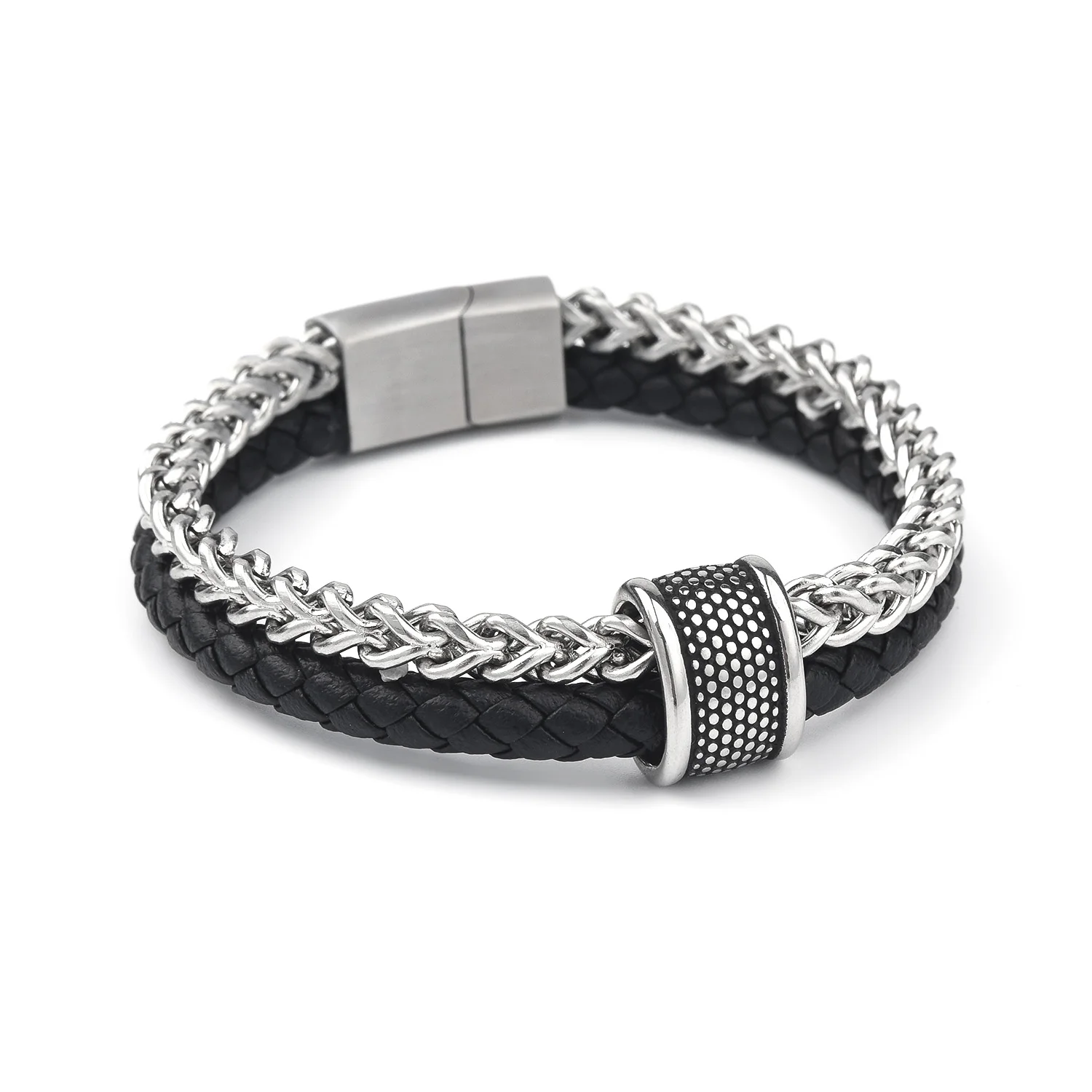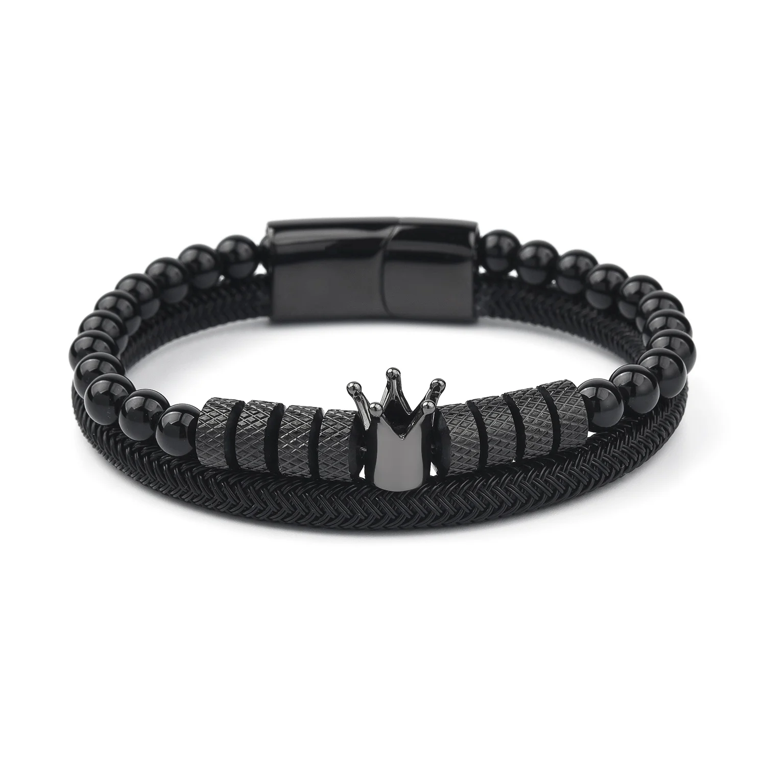 Item Model | Brand New Luxury Men Leather Bracelet Customized Black Gold Plated Bracelet Hand Bracelets Fashion Jewelry |