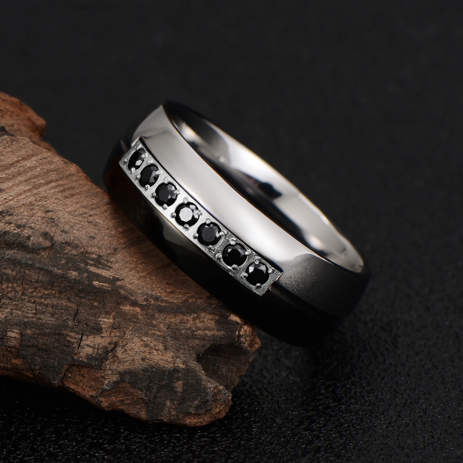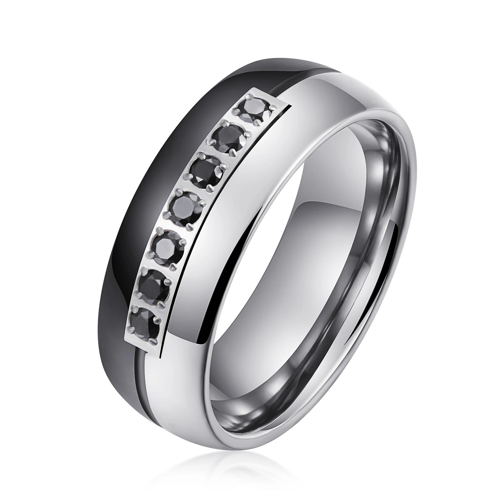 Item Model | Brand New Tungsten Wedding Rings Silver Black Zircon Inlay Tungsten Ring Custom Tungsten Jewelry Men Rings |