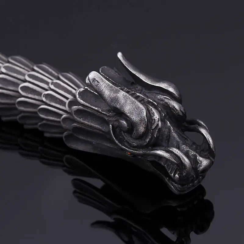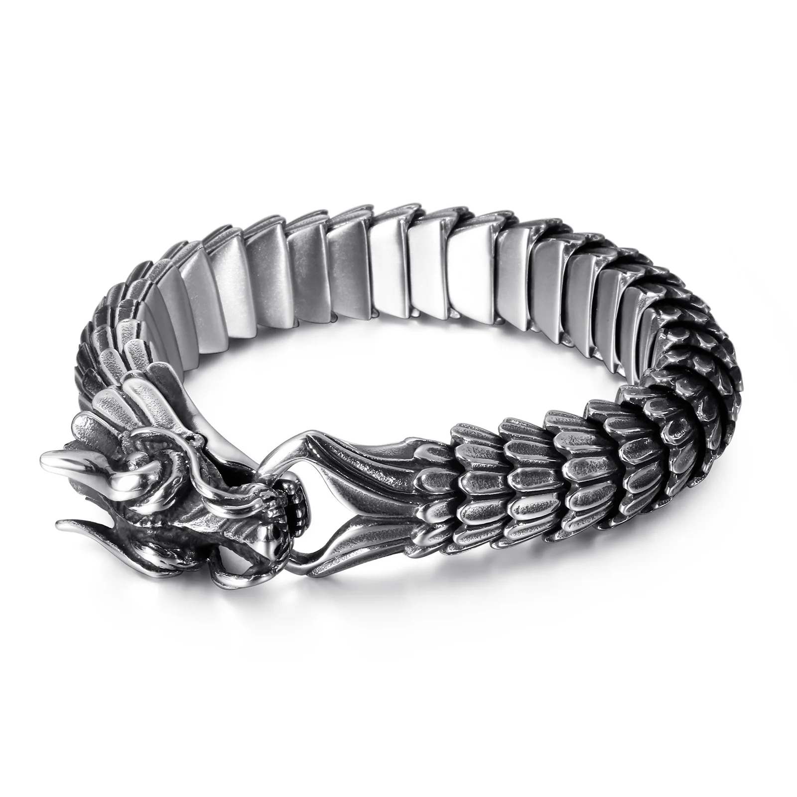Custom Black Titanium Stainless Steel Dragon Bracelet Animal Zodiac Sign