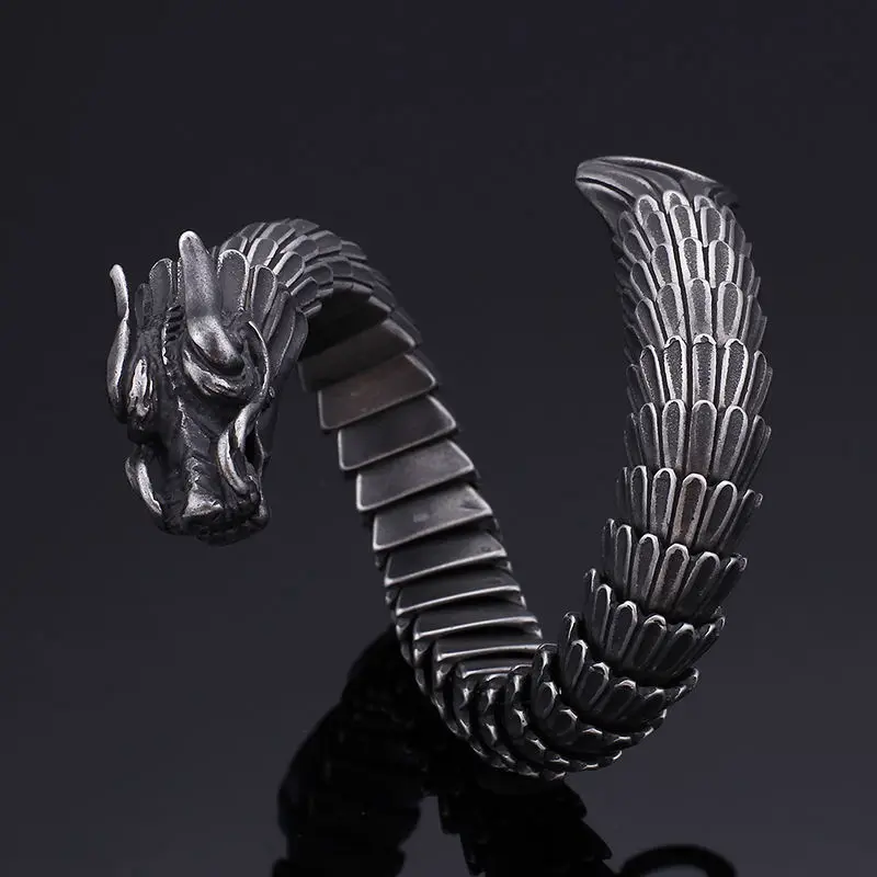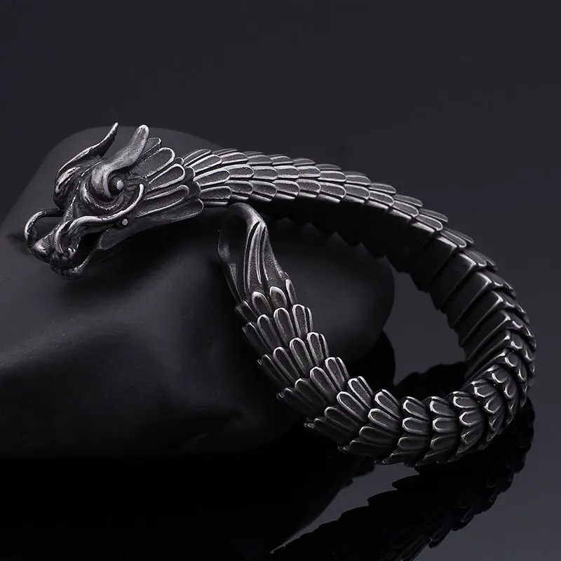 • Custom Black Titanium Stainless Steel Dragon Bracelet Animal Zodiac Sign