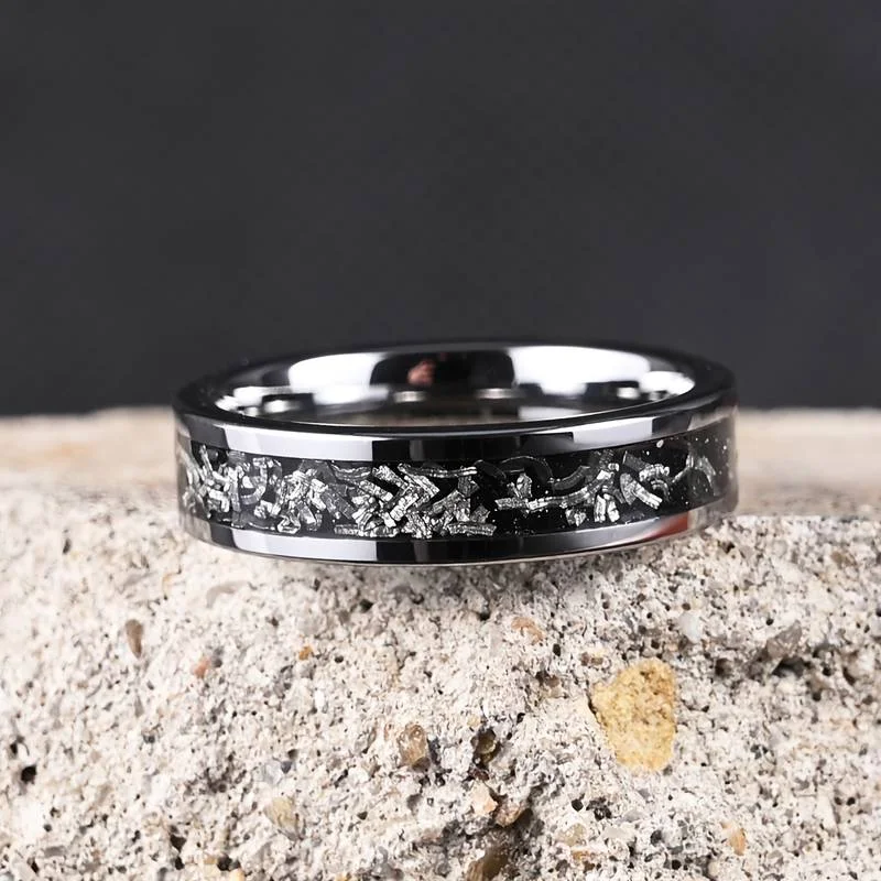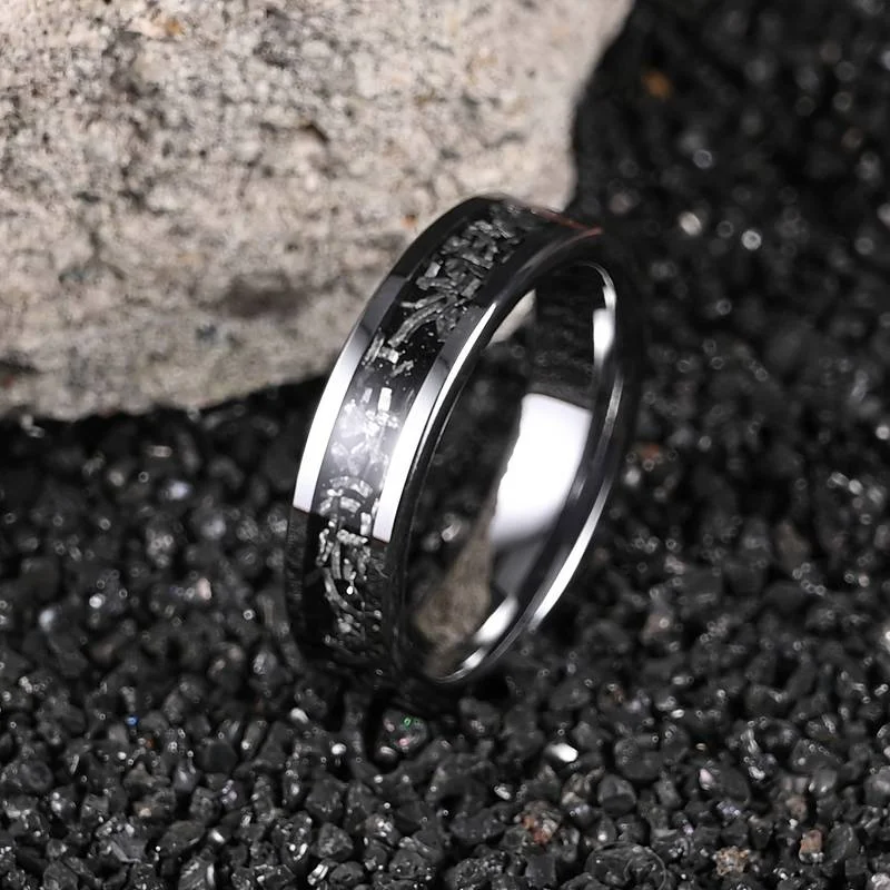 • Custom Engagement Band Tungsten Steel Silver 4MM Tungsten Meteorite Ring Accessories Women Rings Jewelry Womens