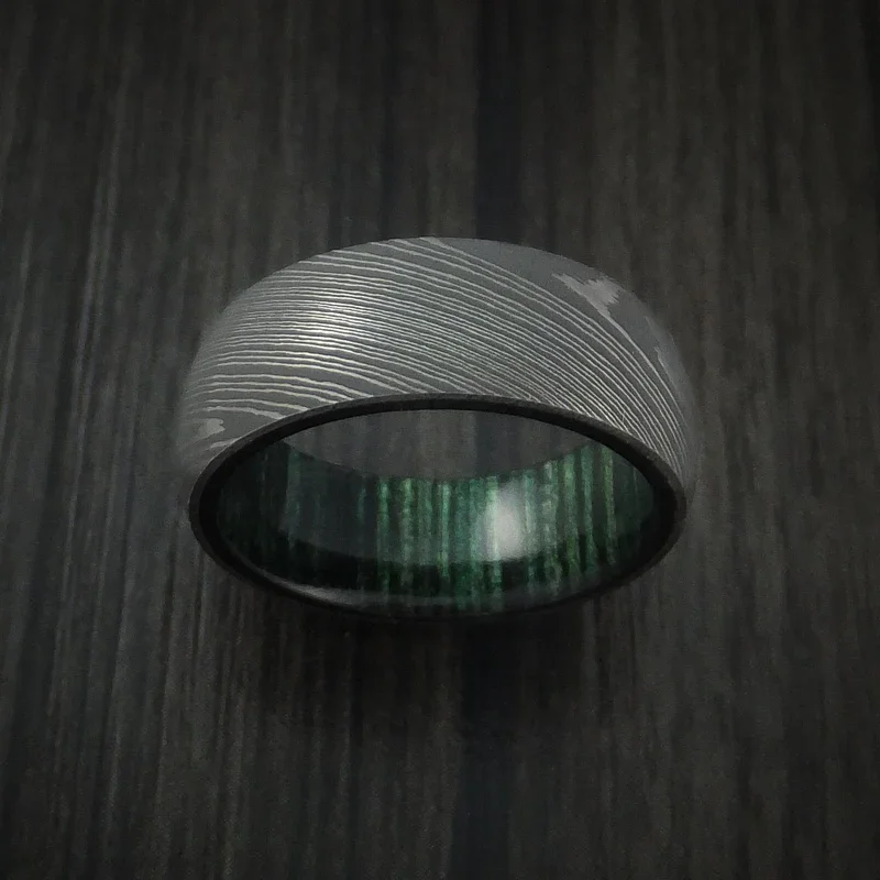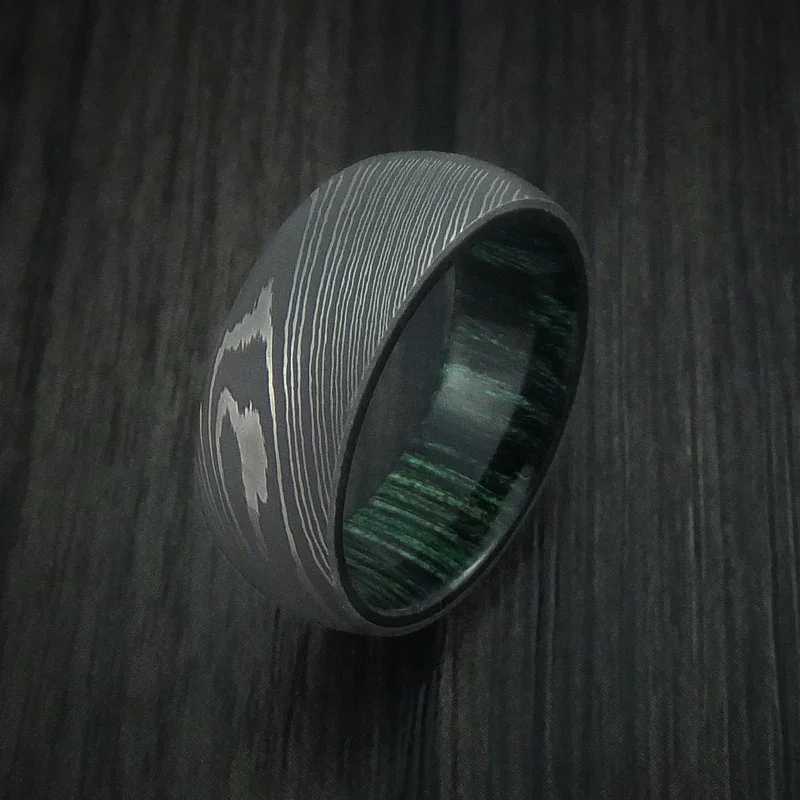 Item Model | Custom Handmade Damascus 8mm Fashion Jewelry For Men Black Damascus Steel Ring Wood Inlay Damascus Ring |