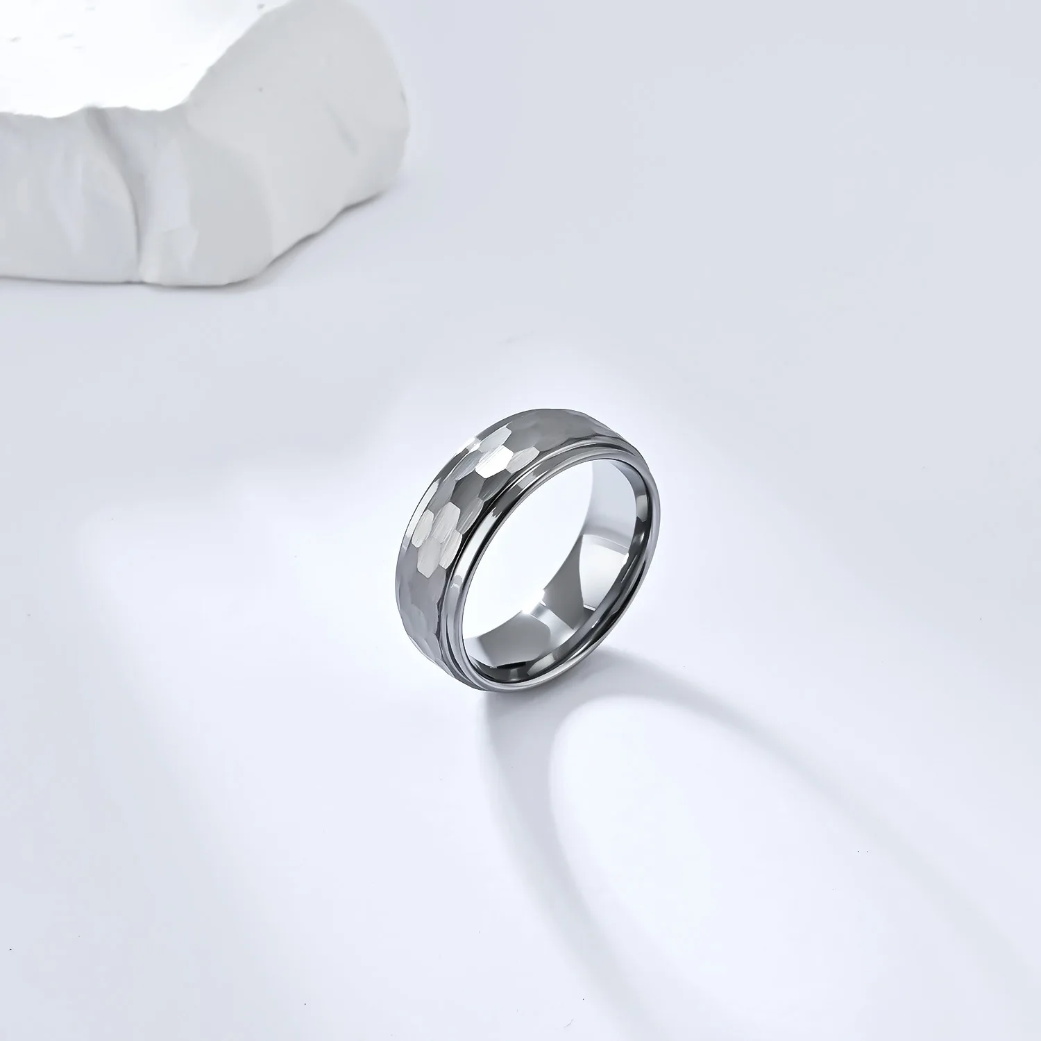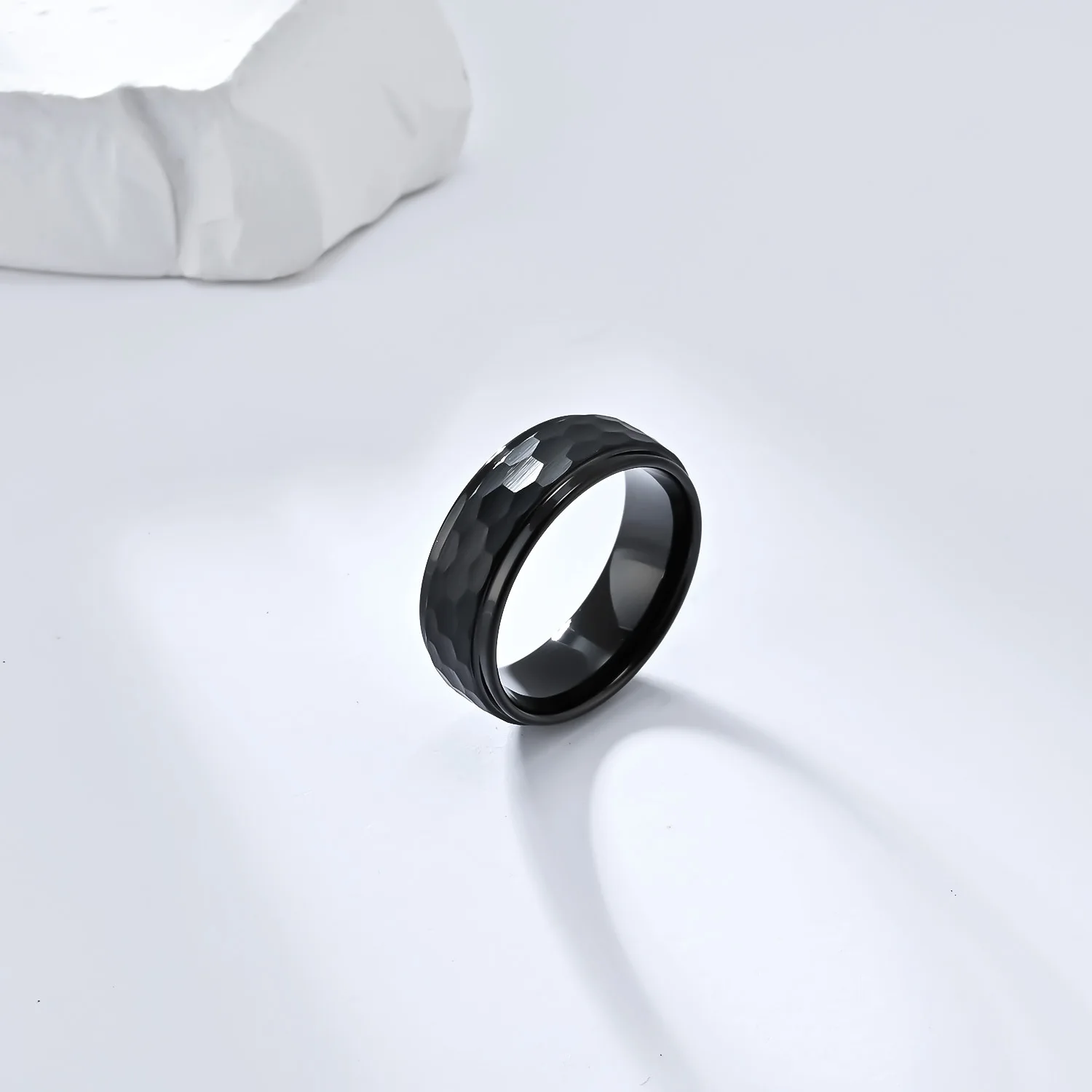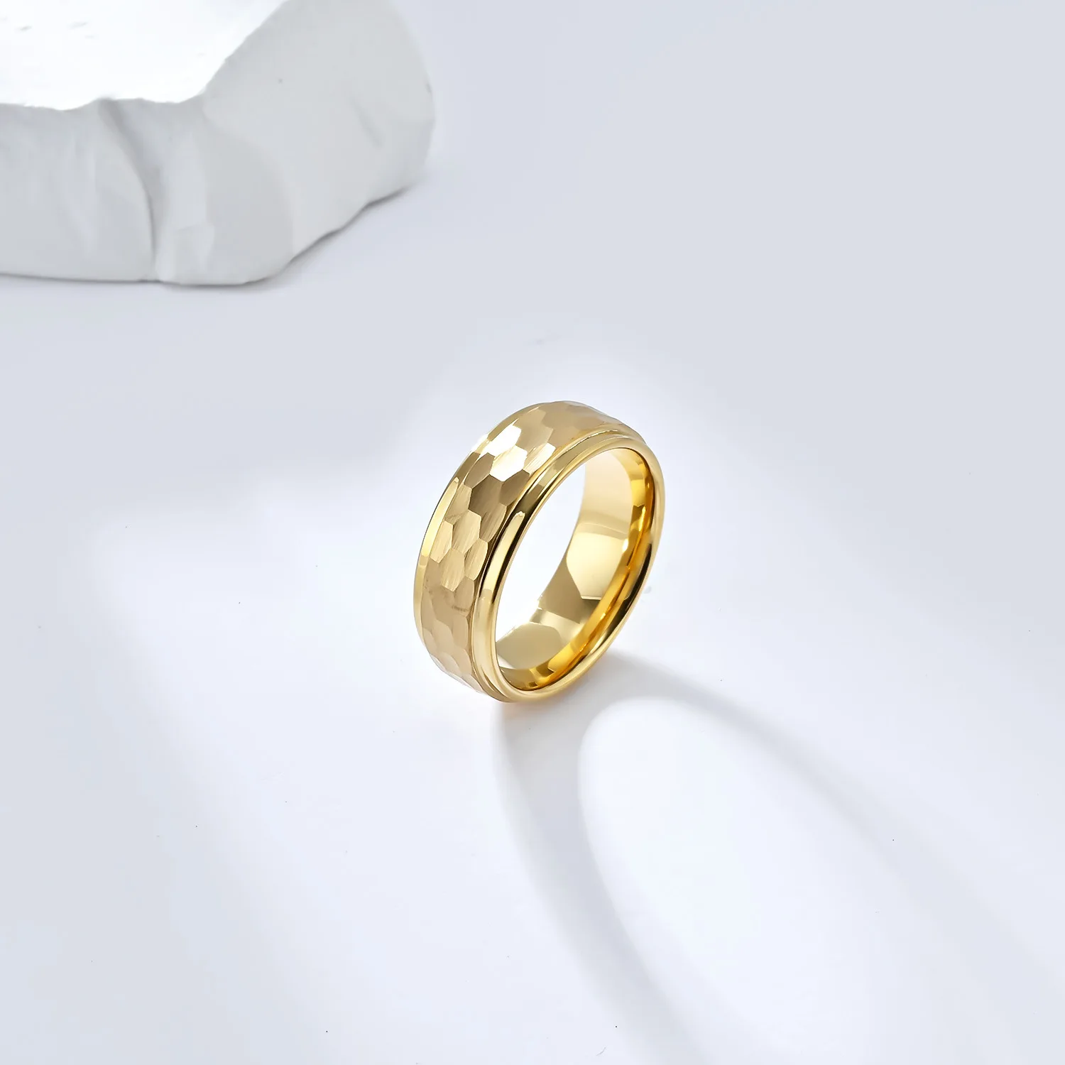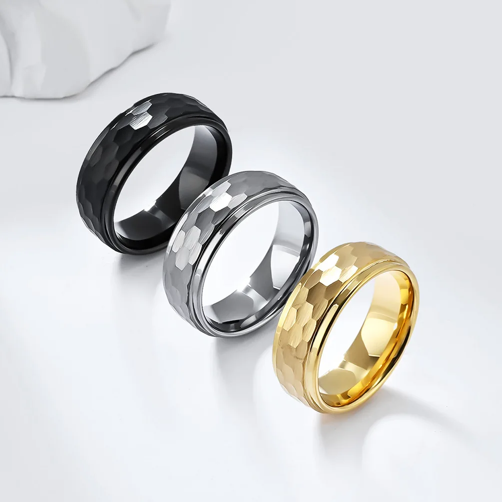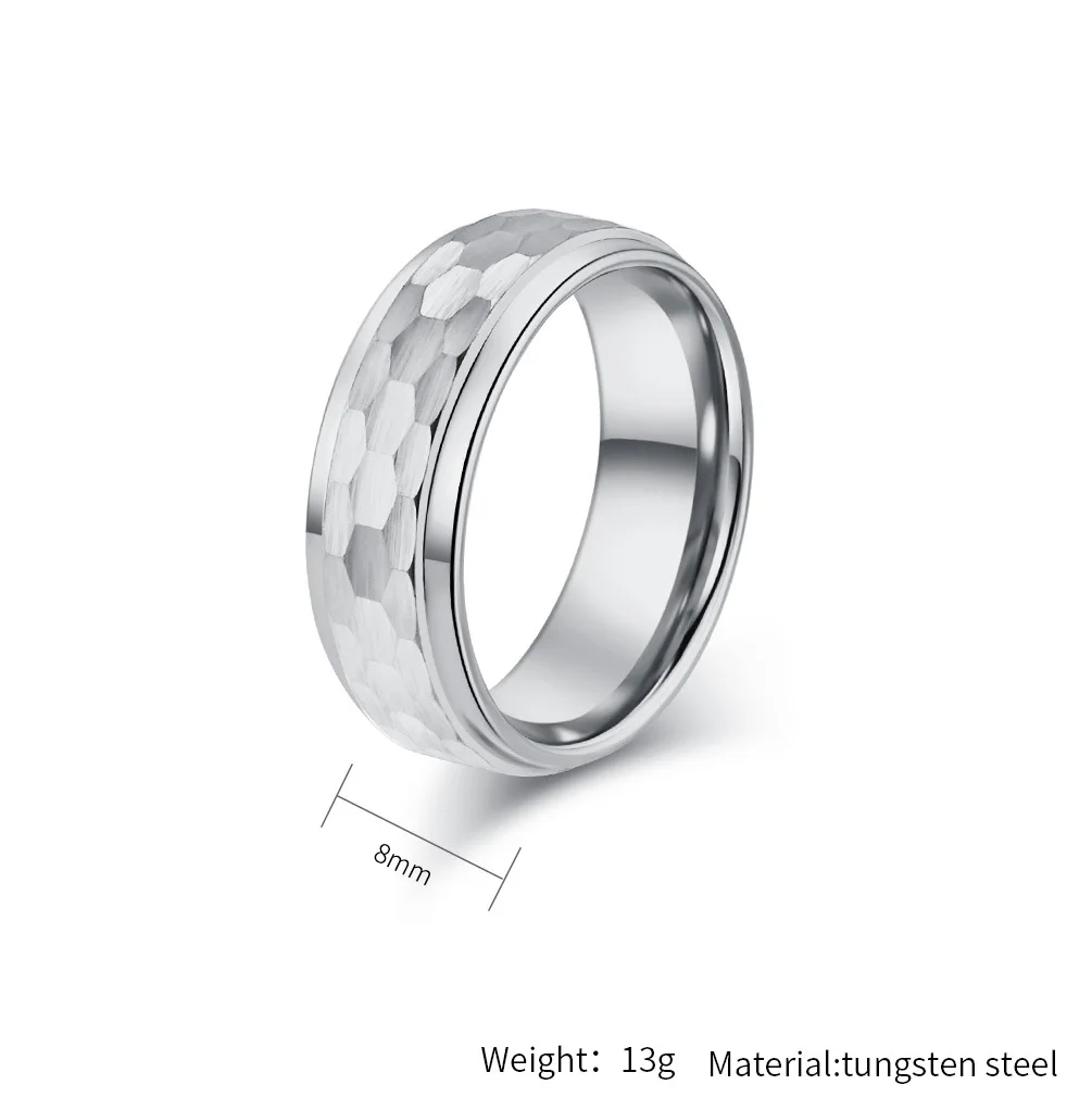• Custom Jewelry 8mm Black Golden Silver Hammered Tungsten Ring for Men Women Engagement Wedding Band