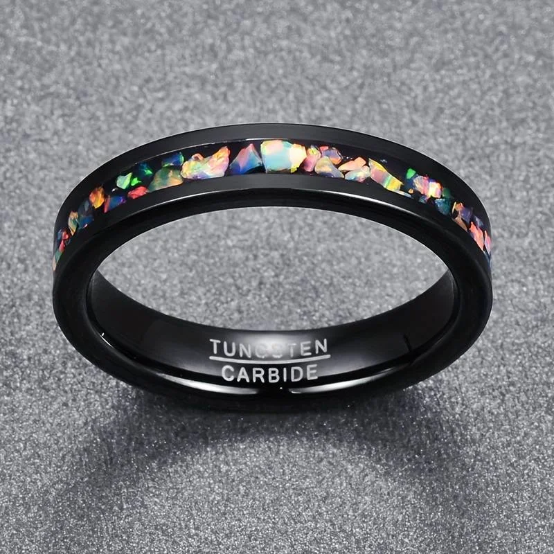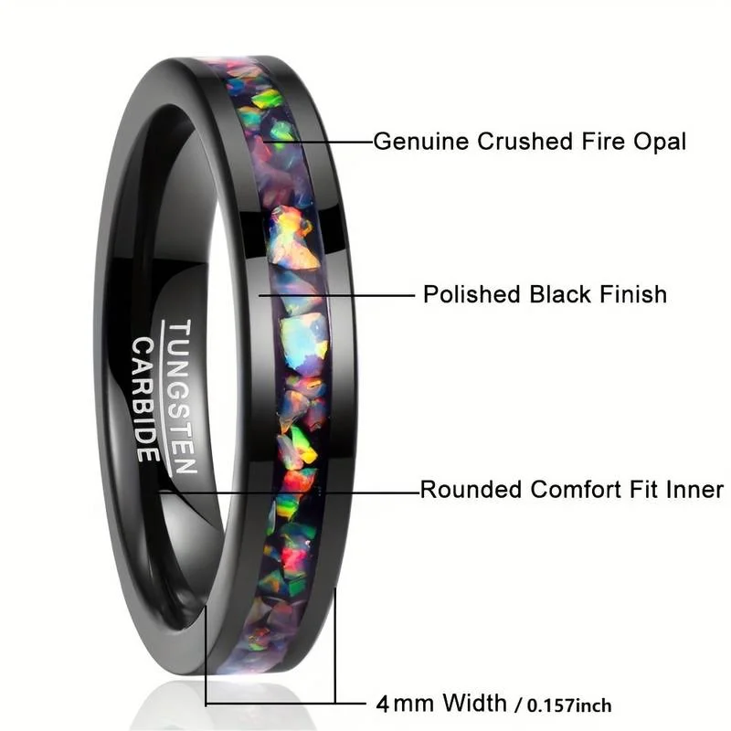 Item Model | Custom Logo 4MM Width Tungsten Carbide Ring Black Plated Fire Opal Tungsten Rings For Women Men Fashion Jewelry |