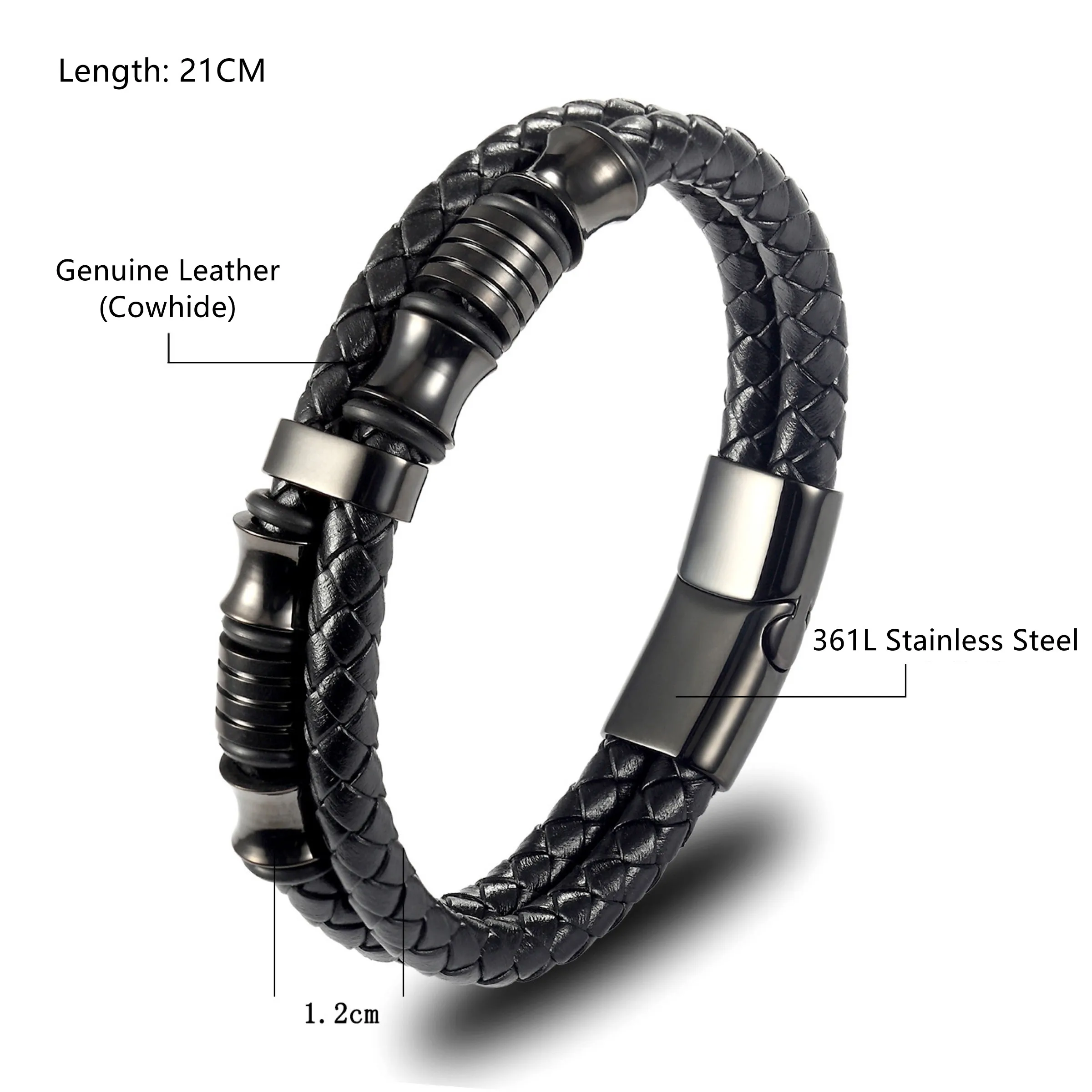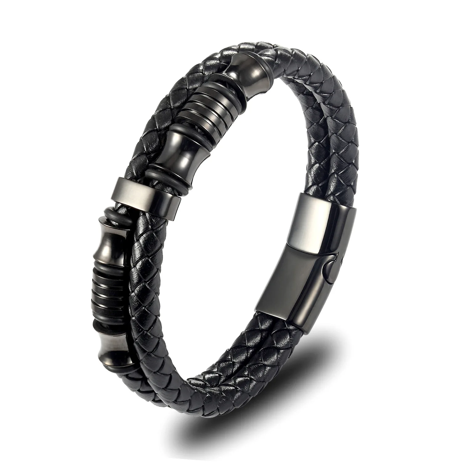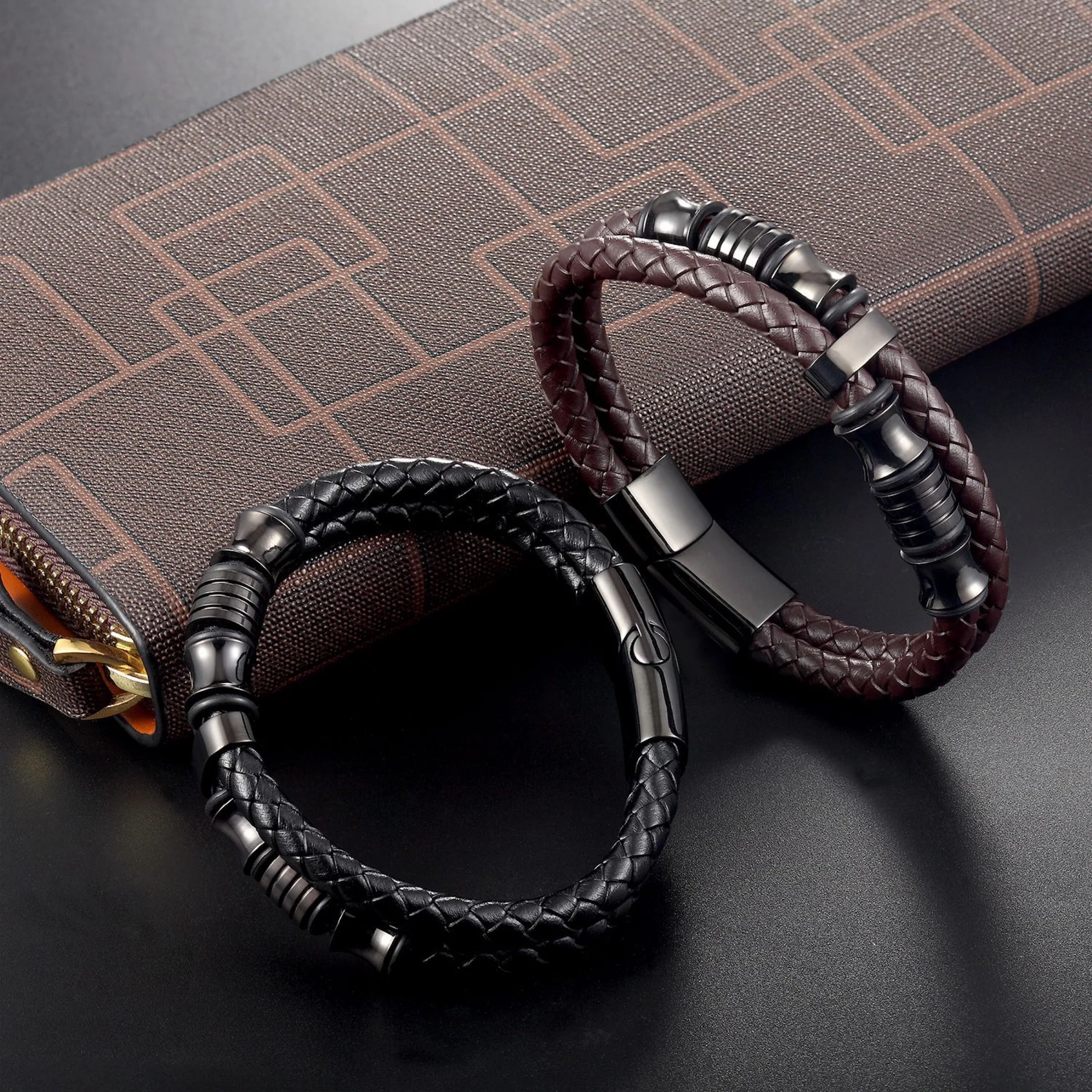 Item Model | Men's Multi-Strand Braided Leather Chain Bracelet with Magnetic Closure |