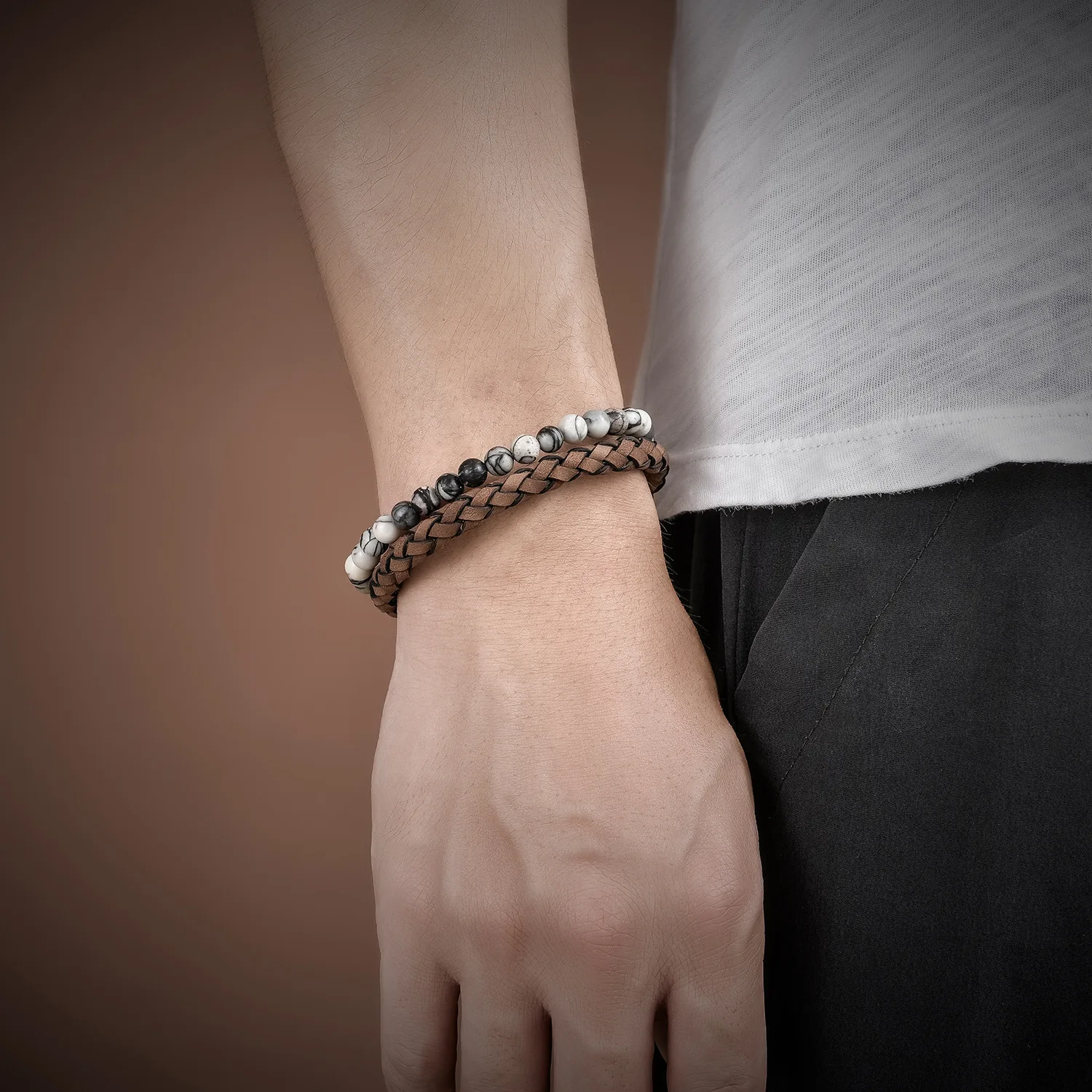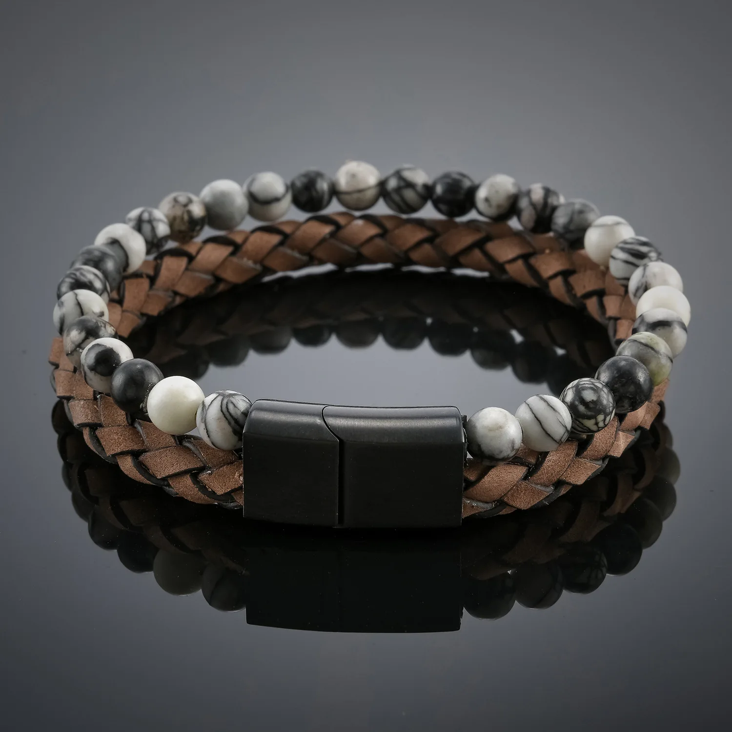 Men's Multi-Strand Braided Leather Chain Bracelet with Magnetic Closure