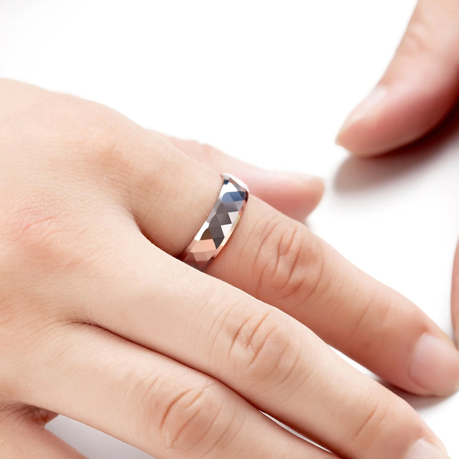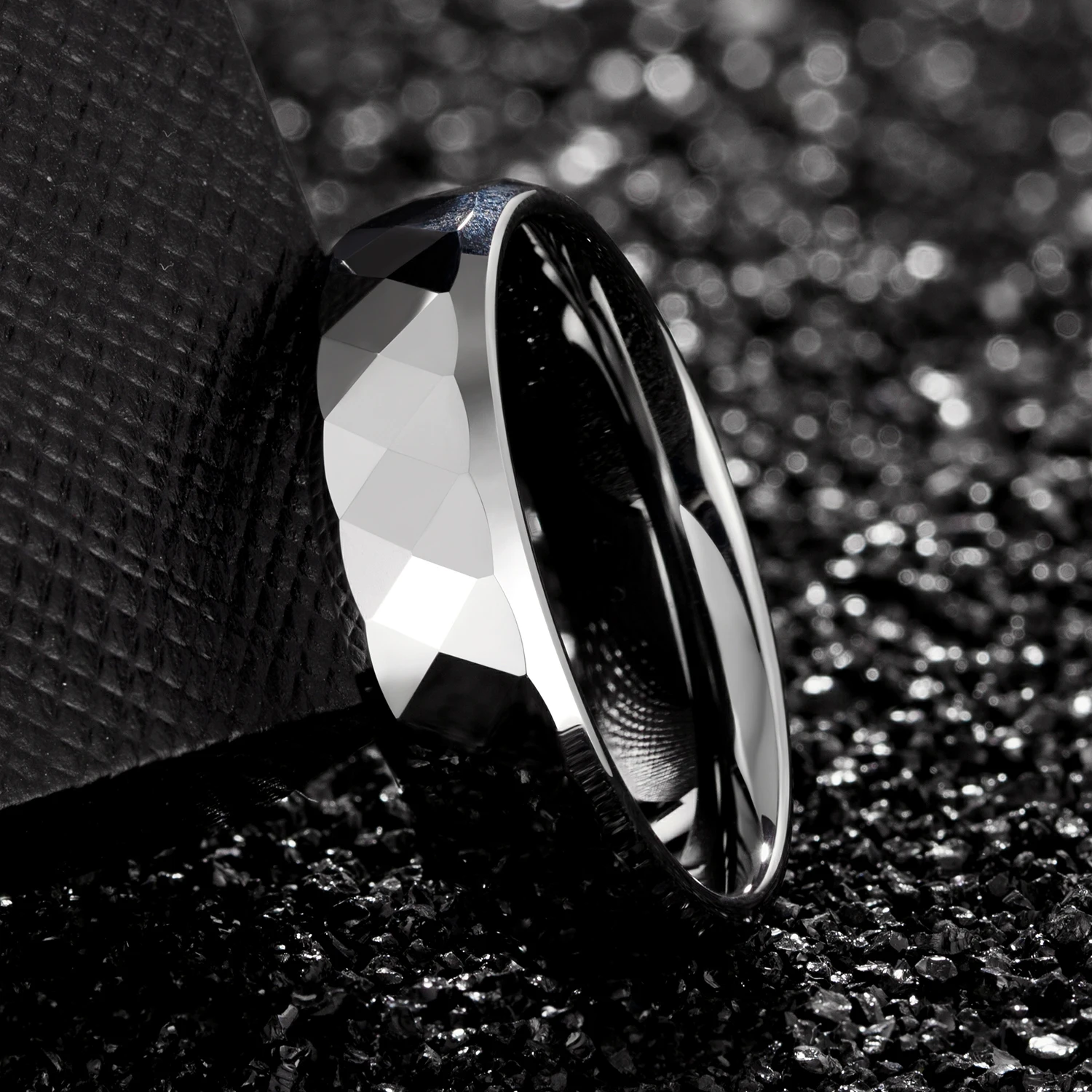 Item Model | Faceted Pattern hammered tungsten ring silver tungsten ring carbide ring tungsten men |