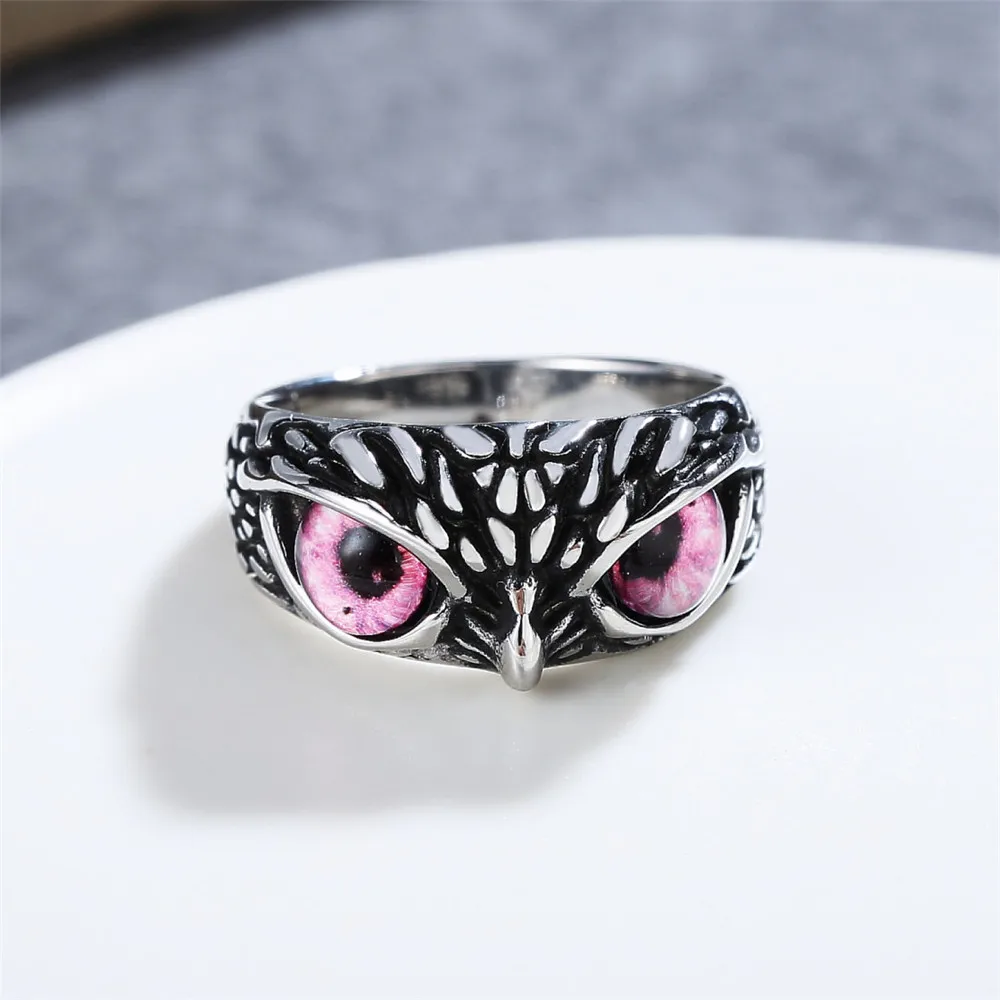 • Factory Direct Sale Demon Eyes Owl Punk Jewelry Couple Animal Stainless Steel Promise Ring Jewelry Women for Men Rings