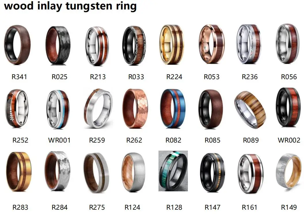 New design wood stripe sticker set ring with tungsten ring prices