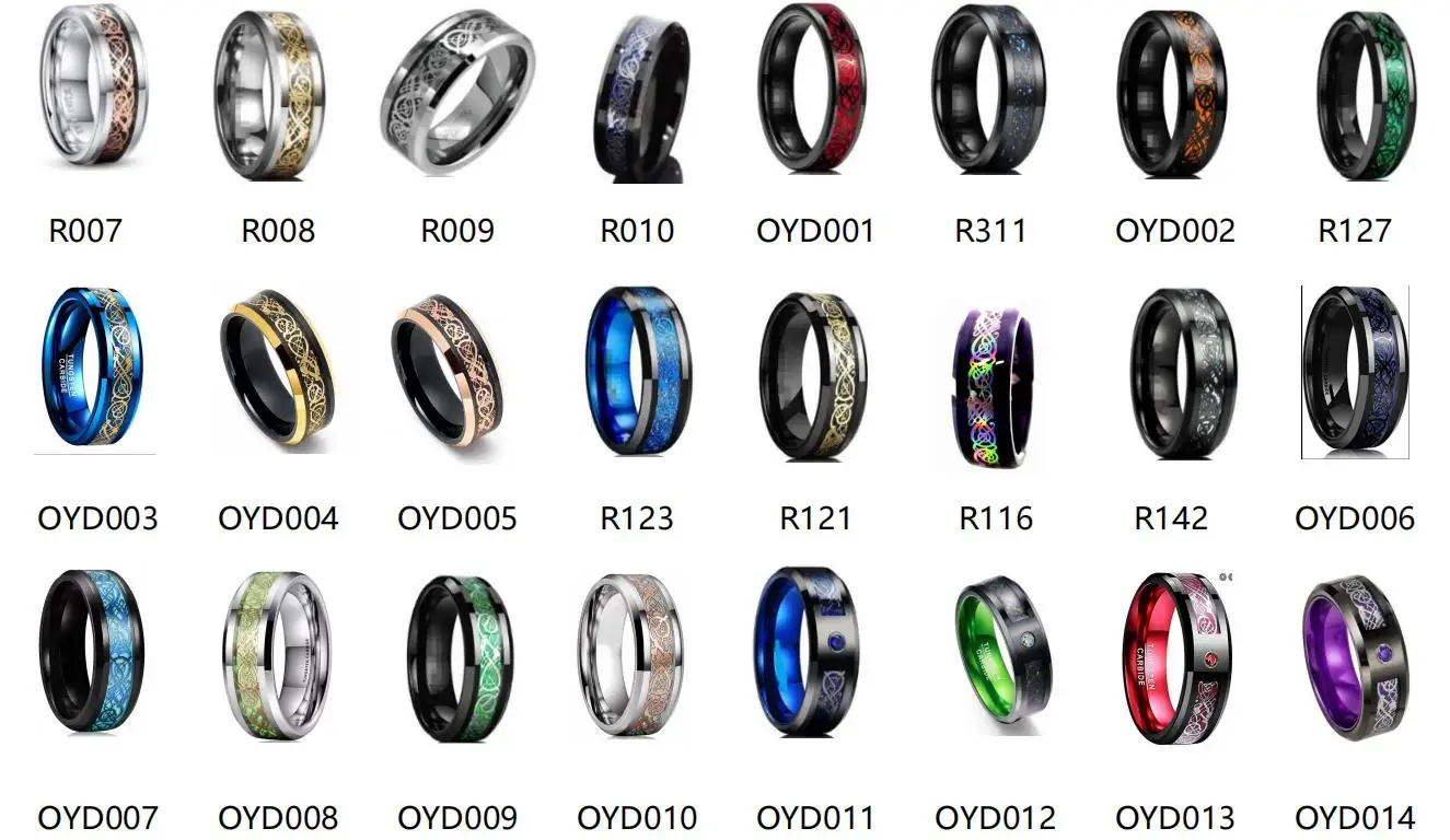 Q1: How to order?A:inquiry>>confirmation>>payment>>delivery.Q2: About MOQ?A: Depends on jewelry material.As it to tungsten,usually 100 PCS.(10 PCS for one size)Q3: If I order now,when can I received my goods?A: Depends on QTY,Styles of jewelry,about 25 days.Q4: About sample and freight?A: Smples are not free only when order is more than $6000.Q5: About price?A: Price is based on QTY, payment terms, time of delivery.