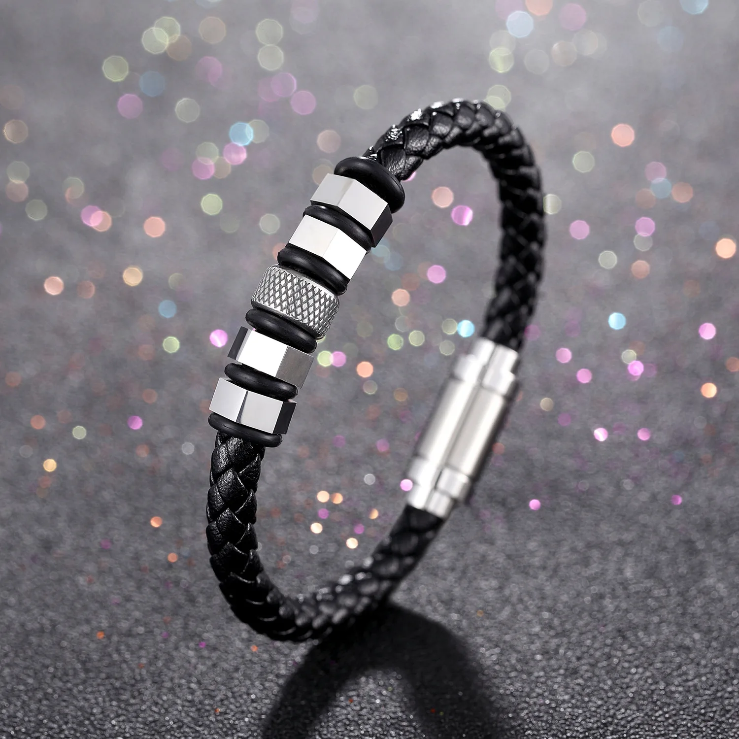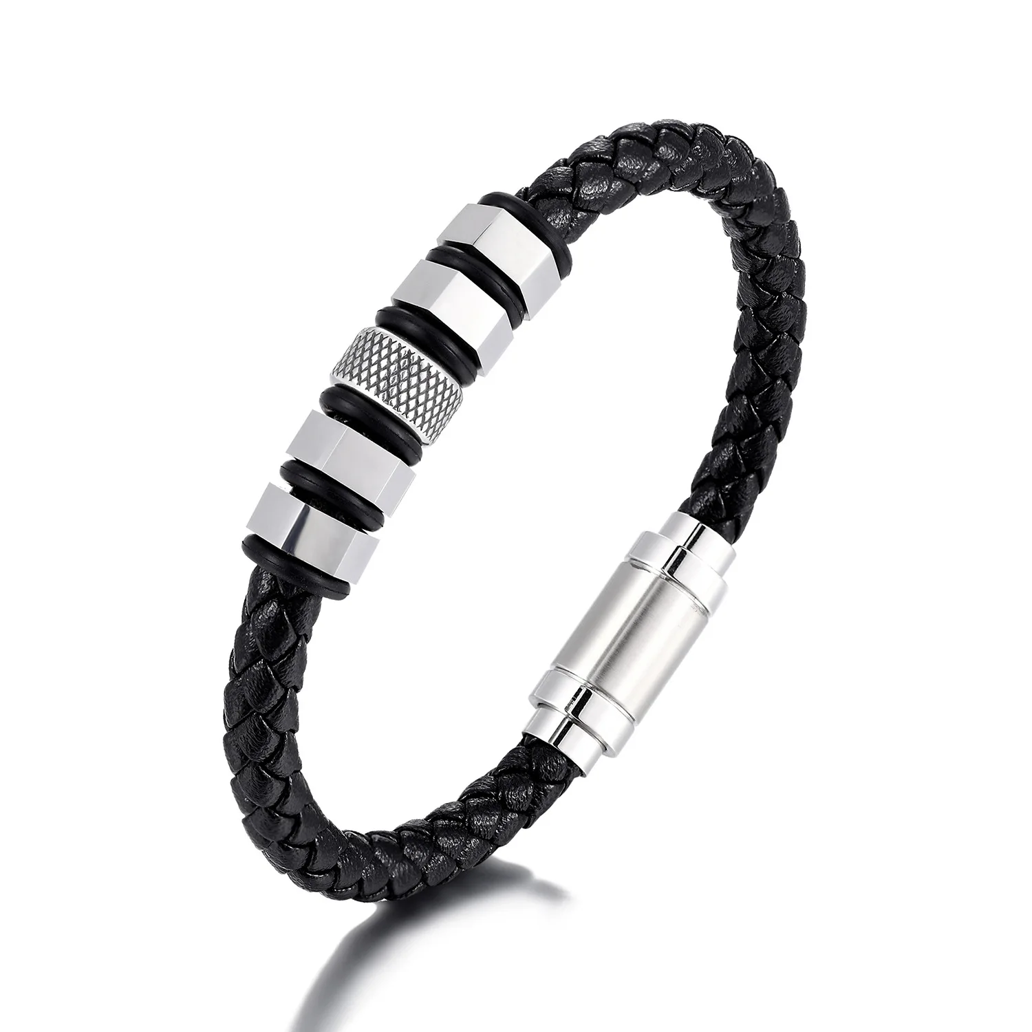 Factory Direct Sales Fashion Fine Jewelry Bangle 21cm 20cm 19cm Silver Stainless Steel Leather Bracelet for Men Bracelet