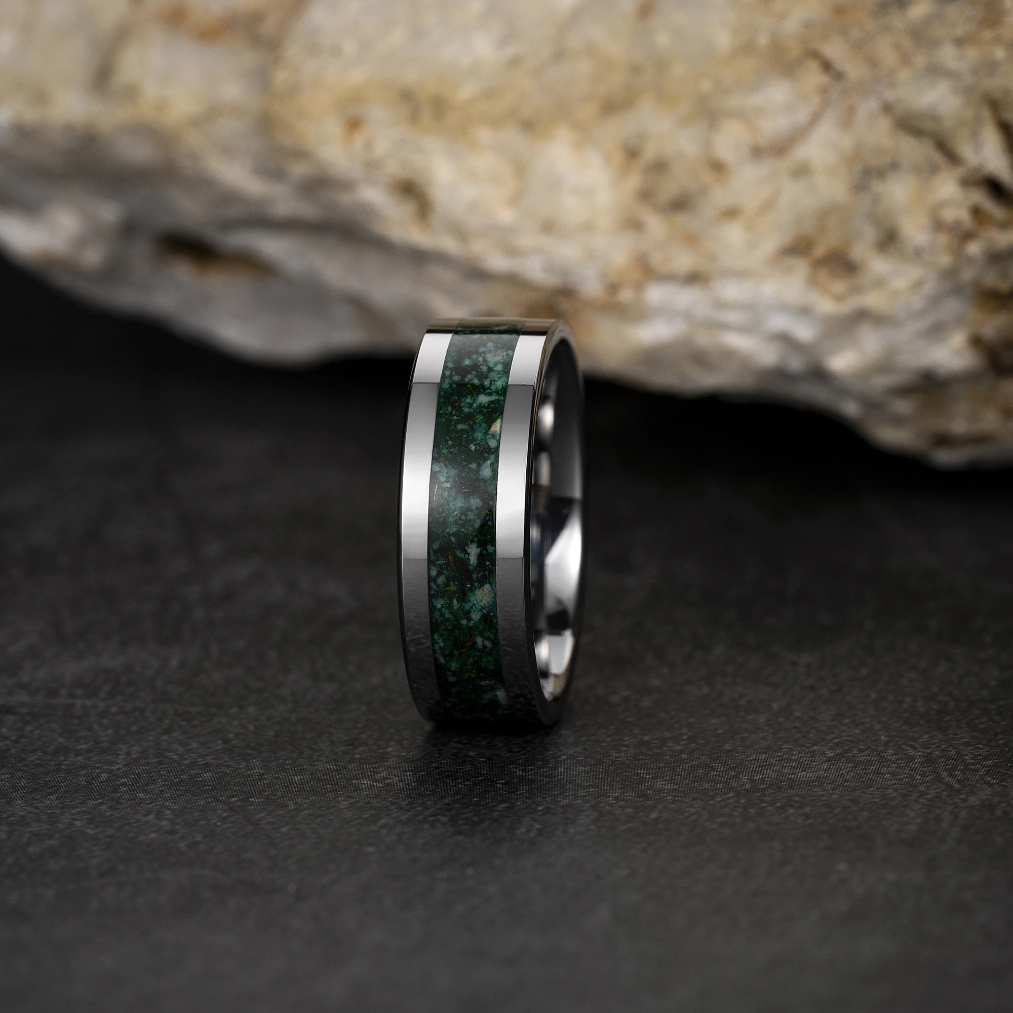 Item Model | Factory directly sell Custom High Polish 8mm silver plated Tungsten ring With Opal Inlay Carbide Steel Wedding Band Ring Mens |