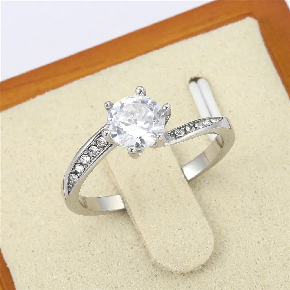 • Factory Fashion Rings 18K Gold Plated Silver Zircon Rings Stainless Steel Jewelry for Women Wedding Engagement Bands