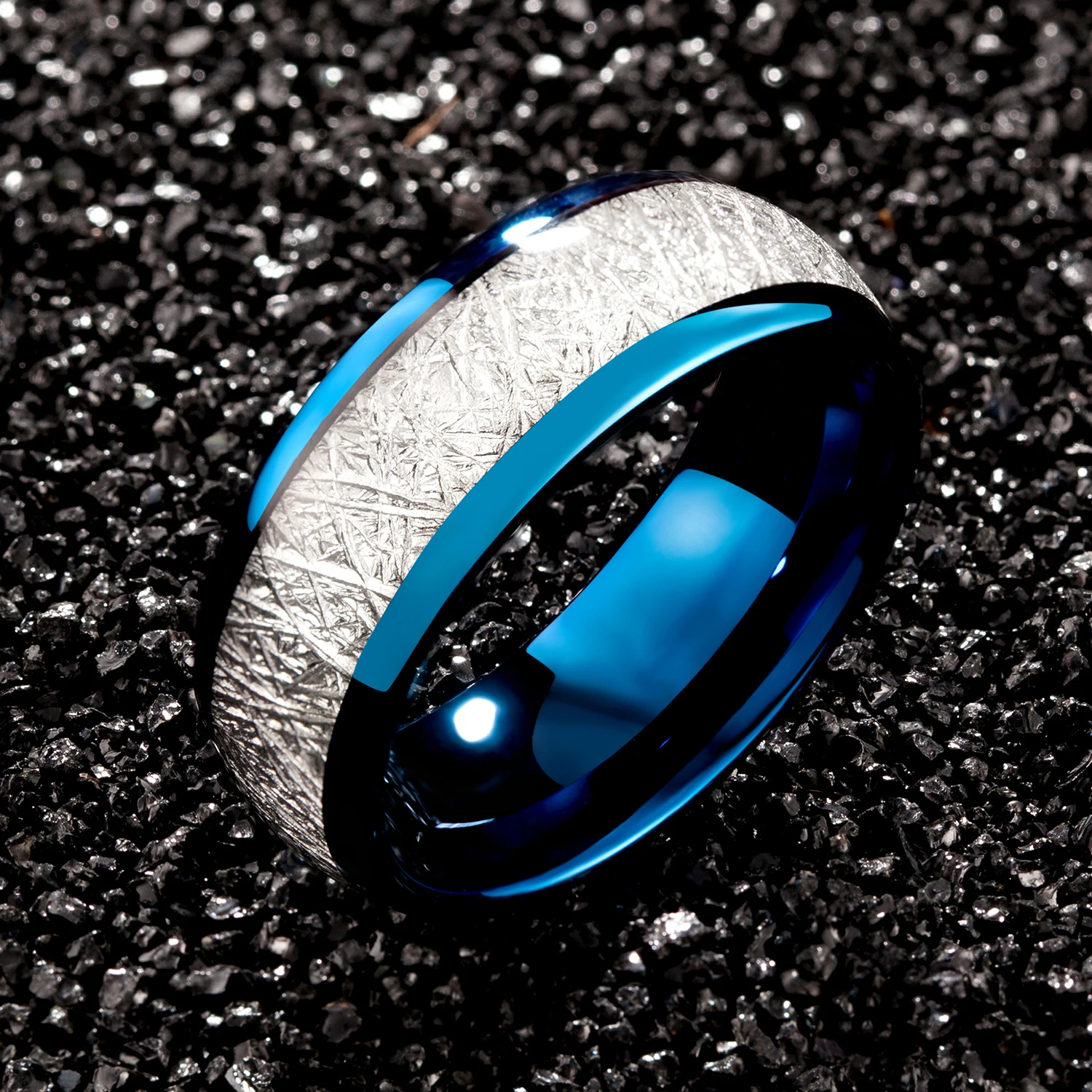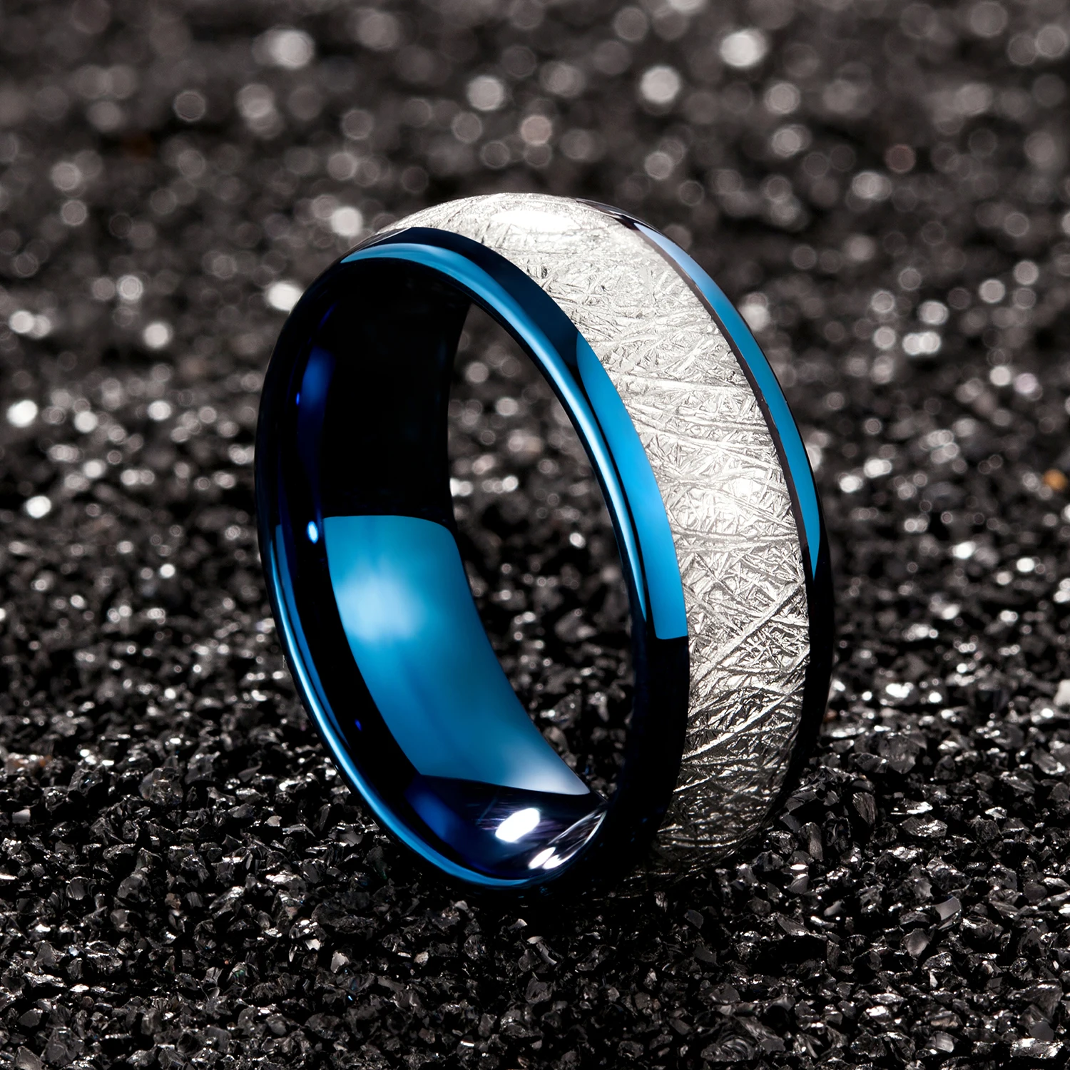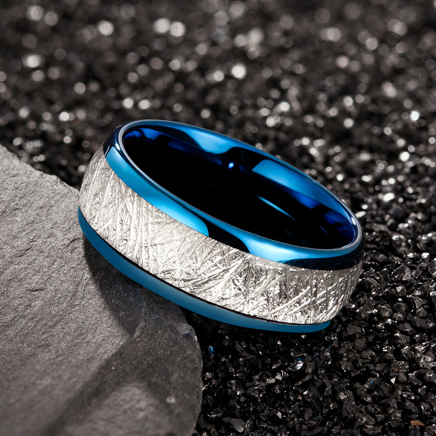 • Factory Wholesale Custom 2024 Hot Trend Men and Women's Wedding Engagement Ring Electroplating Inset Blue Tungsten Ring
