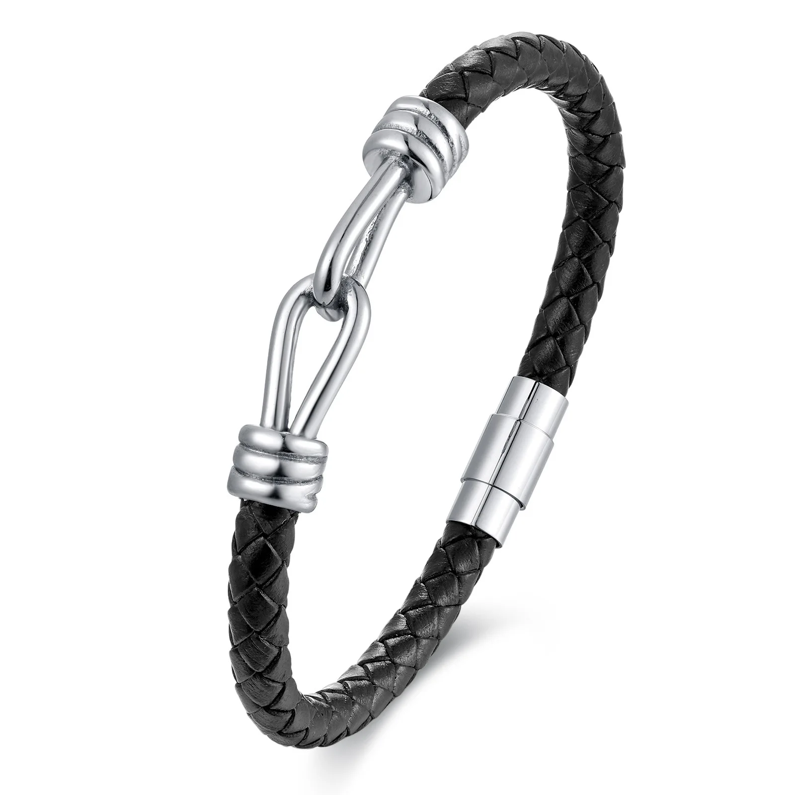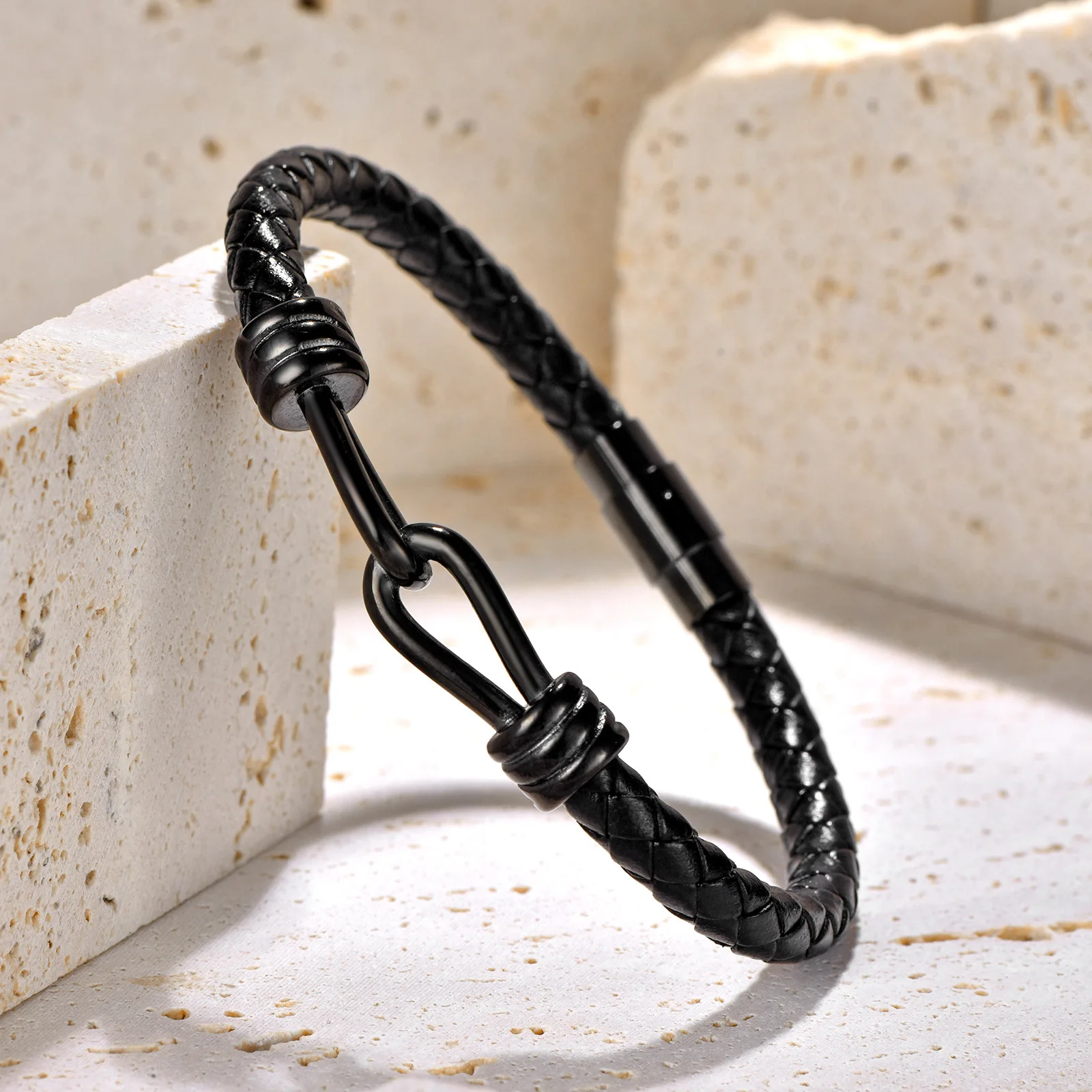 Item Model | Men's Multi-Strand Braided Leather Chain Bracelet with Magnetic Closure |
