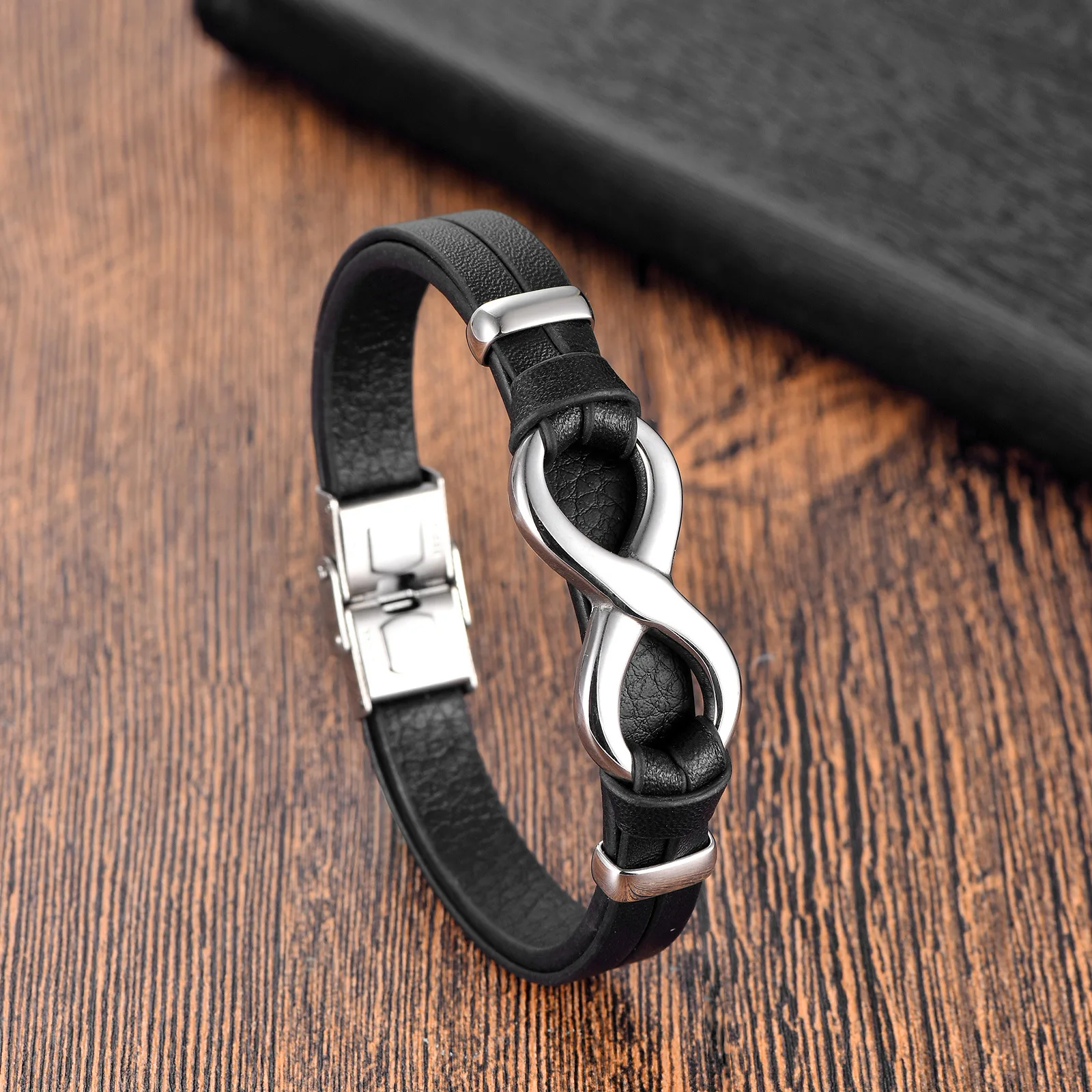 • Fashion Infinity Symbol Leather Bracelet Men Korean Personality Versatile Punk Jewelry Stainless Steel Bracelet Gifts for Men