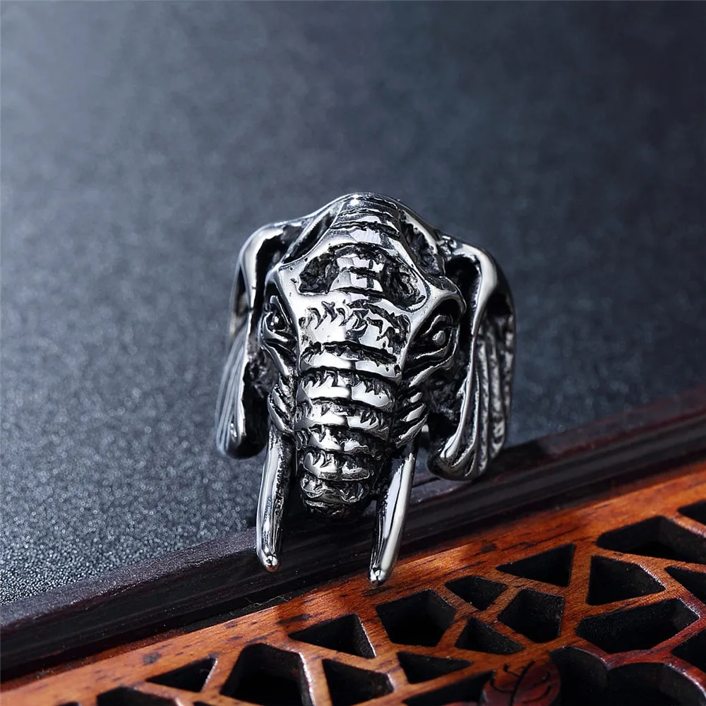• Fashion Inoxidable Biker Ring Silver Stainless Steel Animal Elephant Ring for Men