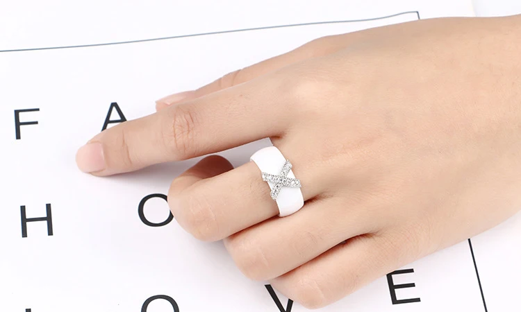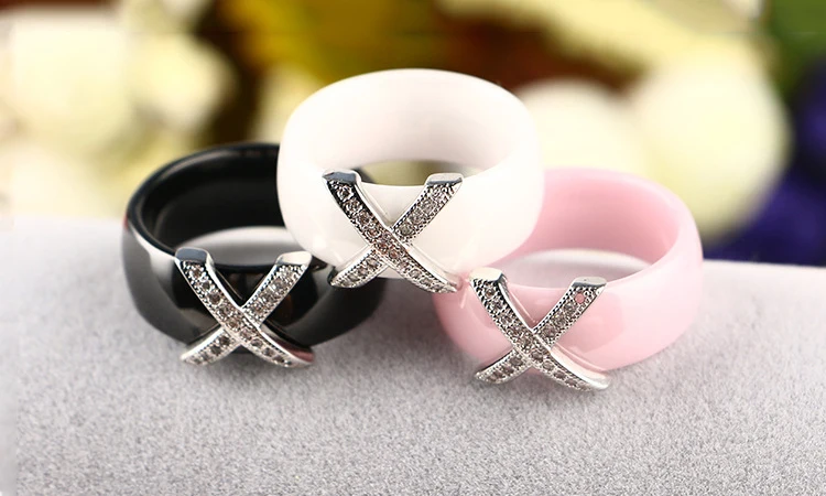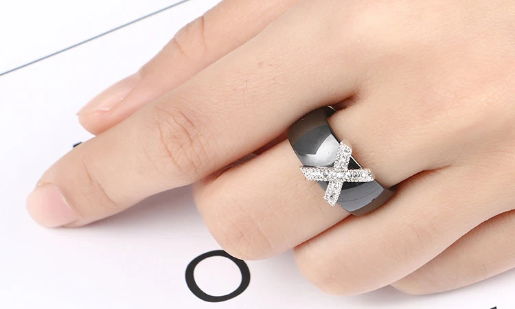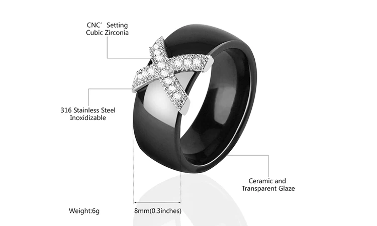 Item Model | Fashion Jewelry 6mm Plain Cubic Zirconia Black White Ceramic Rings |