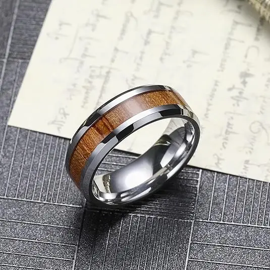 Item Model | New design wood stripe sticker set ring with tungsten ring prices |