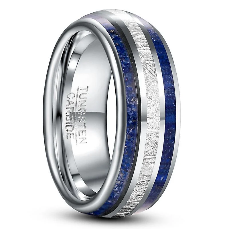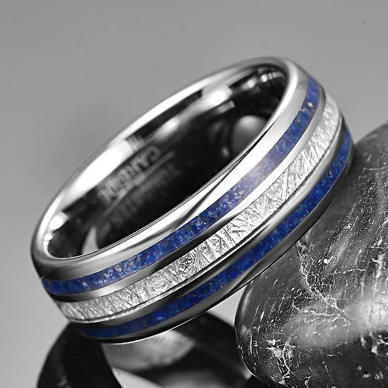 Within the jewelry manufacturing and retail sectors targeting male clientele, this tungsten ring functions as a customization-focused product maximizing client-specific personalization through engraving technology. The durable tungsten carbide base withstands continuous wear, aligning with industry standards for wedding rings for men. The lapis lazuli inlay adds a distinctive visual element, differentiating product lines in competitive wholesale environments. Integration into supply chains is straightforward due to comprehensive sizing and width options. This ring meets regulatory and quality compliance requirements critical to brand reputation and customer satisfaction.