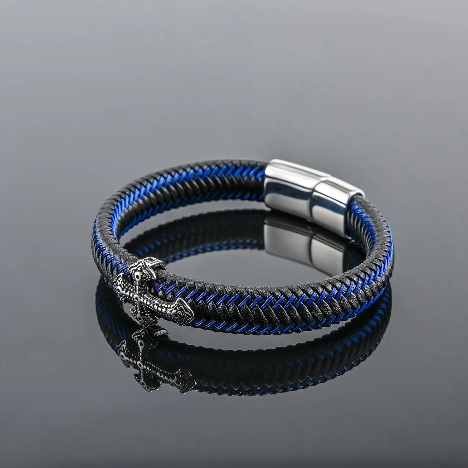 Braided Leather Bracelet; Black Leather With Silver-tone Stainless Steel Ornament, Stand Out But Not Too Gaudy, Go Well With Any Occasion, Great Way to Show You Calm and Lines of Muscle. All Made of High Quality Material, Purely Handmade Tightly Woven Bracelet, Soft and Comfortable Touch Feeling; With Special Stainless Steel Magnetic Clasp, Easy To Put On and No Worry About Losing It During Walk; Strong and Durable, Long Time To Use.