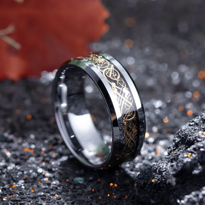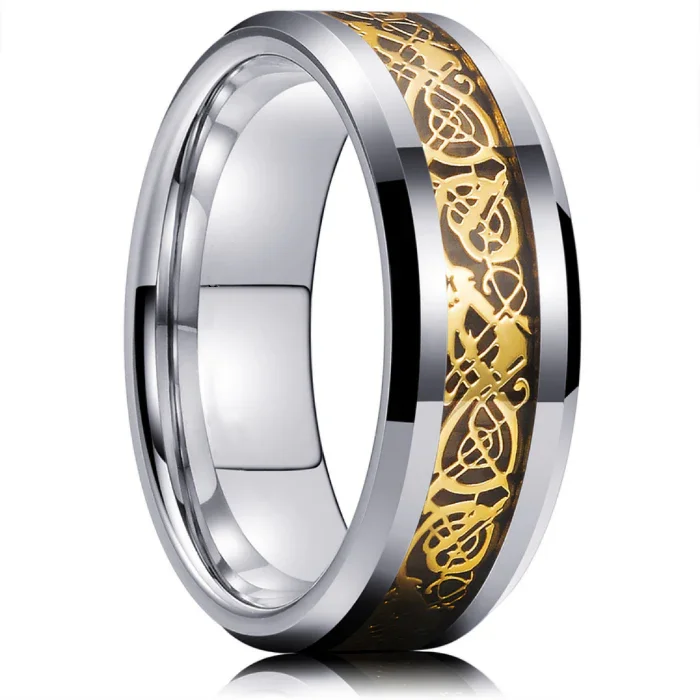 • Fashion Jewelry Ring Ready to Ship Beveled Edge 8mm Silver Tungsten Rings for Men Women Carbon Fiber Black Carbon Fibre Inlay