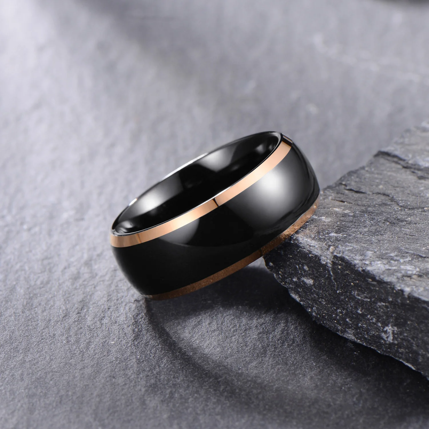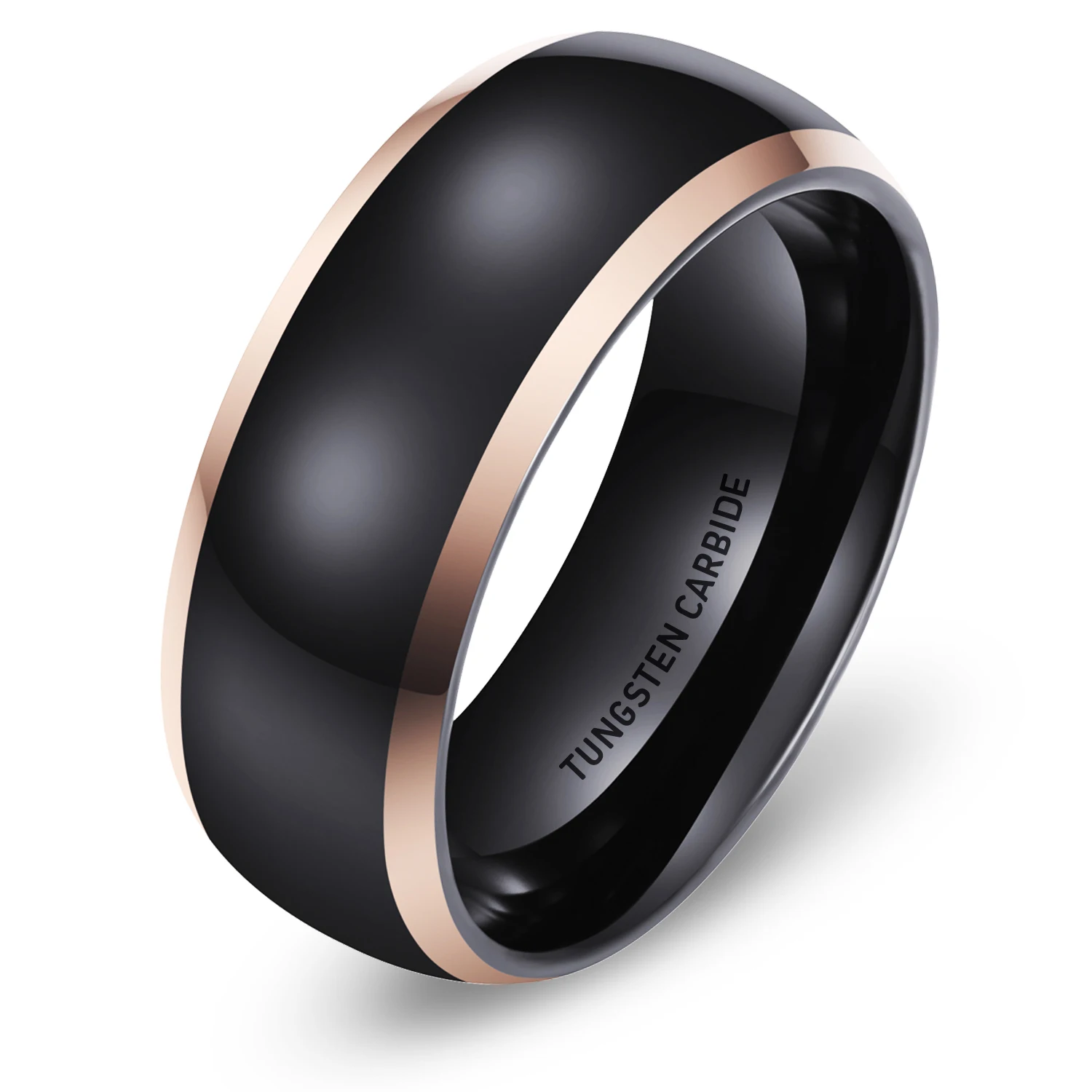 Manufactured wholly from tungsten carbide, this ring offers exceptional hardness and resistance to abrasion, ensuring longevity in high-contact scenarios. The dome polishing enhances surface smoothness, preventing microabrasions and preserving the ring’s lustrous black tungsten plating. Technical parameters include an 8mm width adjustable by customization, accommodating various sizing requirements. This custom tungsten ring achieves a weight balance optimal for tactile awareness without compromising comfort. The product supports diverse plating choices including rose gold, silver, and gold finishes, facilitating integration into multiple retail categories. Each unit conforms to stringent manufacturing tolerances, enabling quality consistency essential for wholesale tungsten rings distribution.
