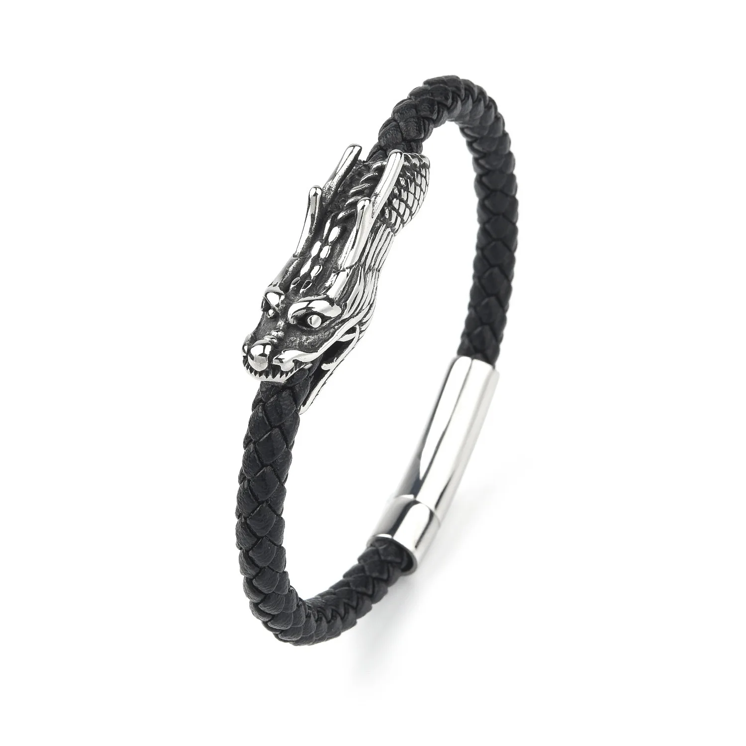 Fashion Jewelry Stainless Steel Jewelry Custom Silver Black Men Leather Bracelet Stainless Steel Bracelet