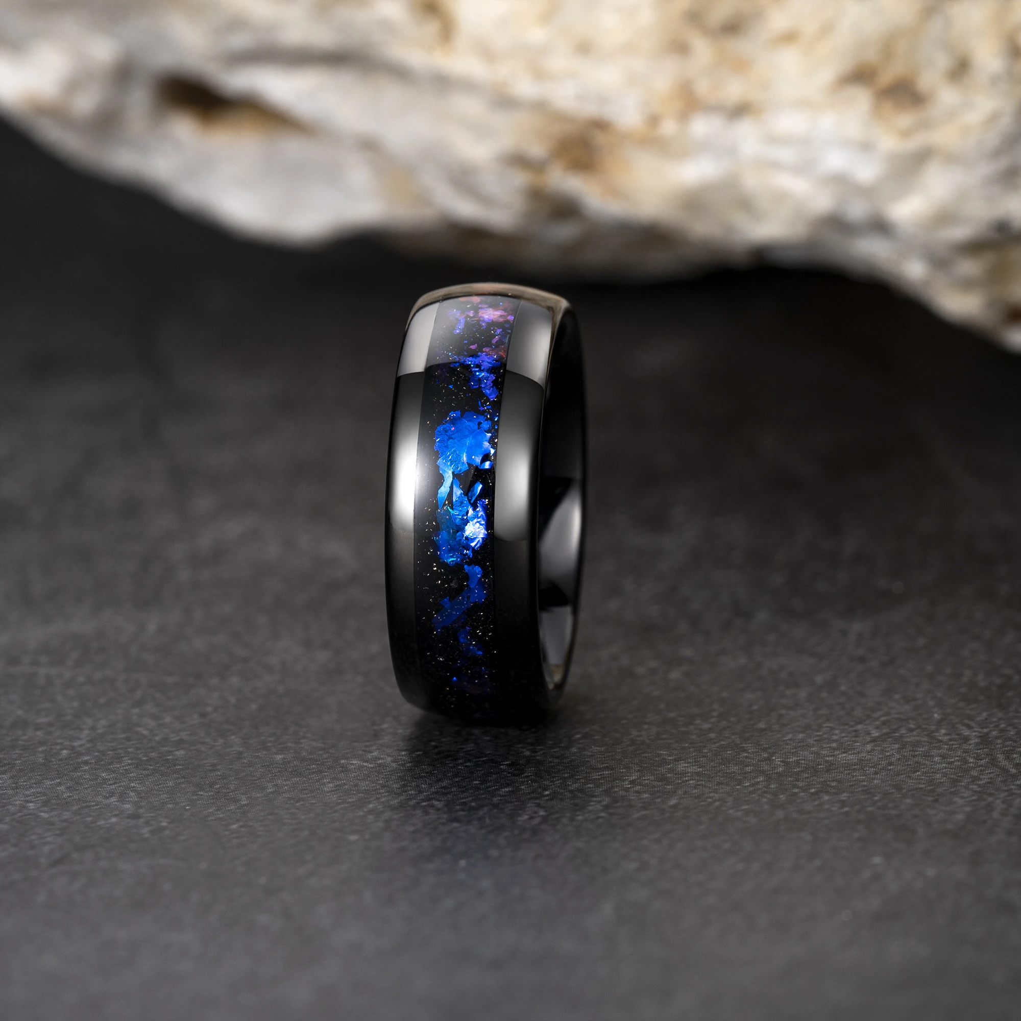 Item Model | Fashion men jewelry 8mm blue Opal galaxy Ring Luxury Band Tungsten ring for men and women wedding ring |