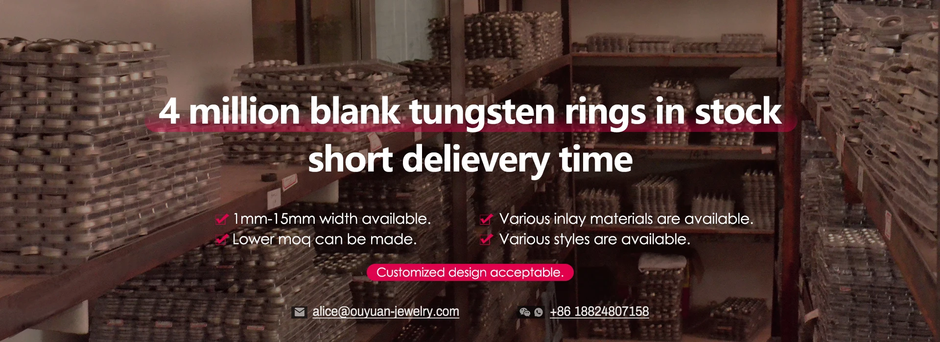 Q1: How to order?A:inquiry>>confirmation>>payment>>delivery.Q2: About MOQ?A: Depends on jewelry material.As it to tungsten,usually 100 PCS.(10 PCS for one size)Q3: If I order now,when can I received my goods?A: Depends on QTY,Styles of jewelry,about 25 days.Q4: About sample and freight?A: Smples are not free only when order is more than $6000.Q5: About price?A: Price is based on QTY, payment terms, time of delivery.